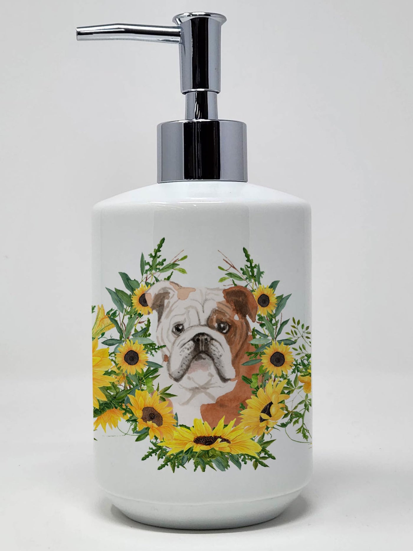 Caroline'S Treasures Ck2941Soap English Bulldog In Sunflowers Ceramic Soap Dispenser Hand Soap Dispenser Pump Bottles For Bathro
