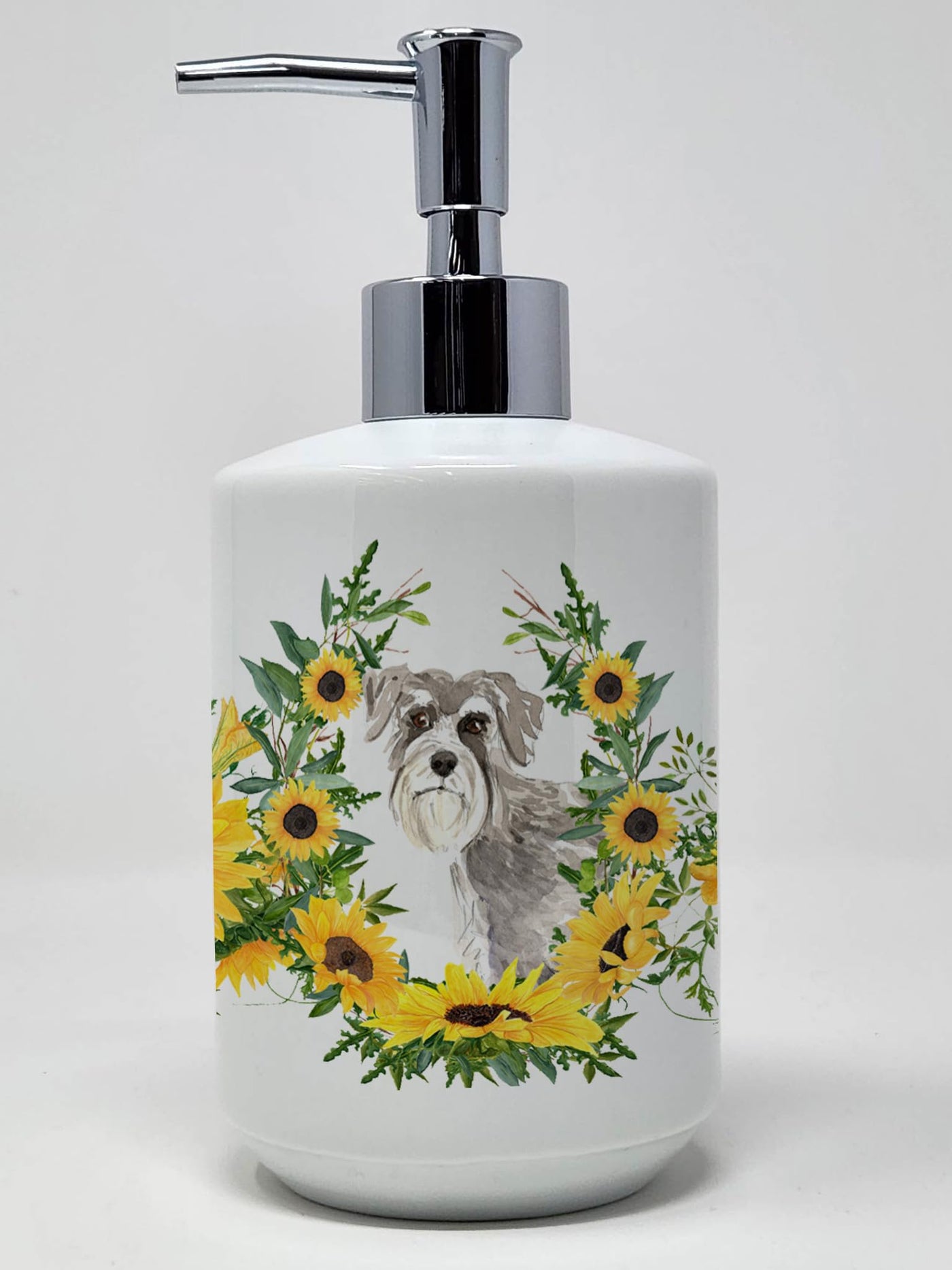 Caroline'S Treasures Ck2965Soap Collie In Sunflowers Ceramic Soap Dispenser Hand Soap Dispenser Pump Bottles For Bathroom Kitche