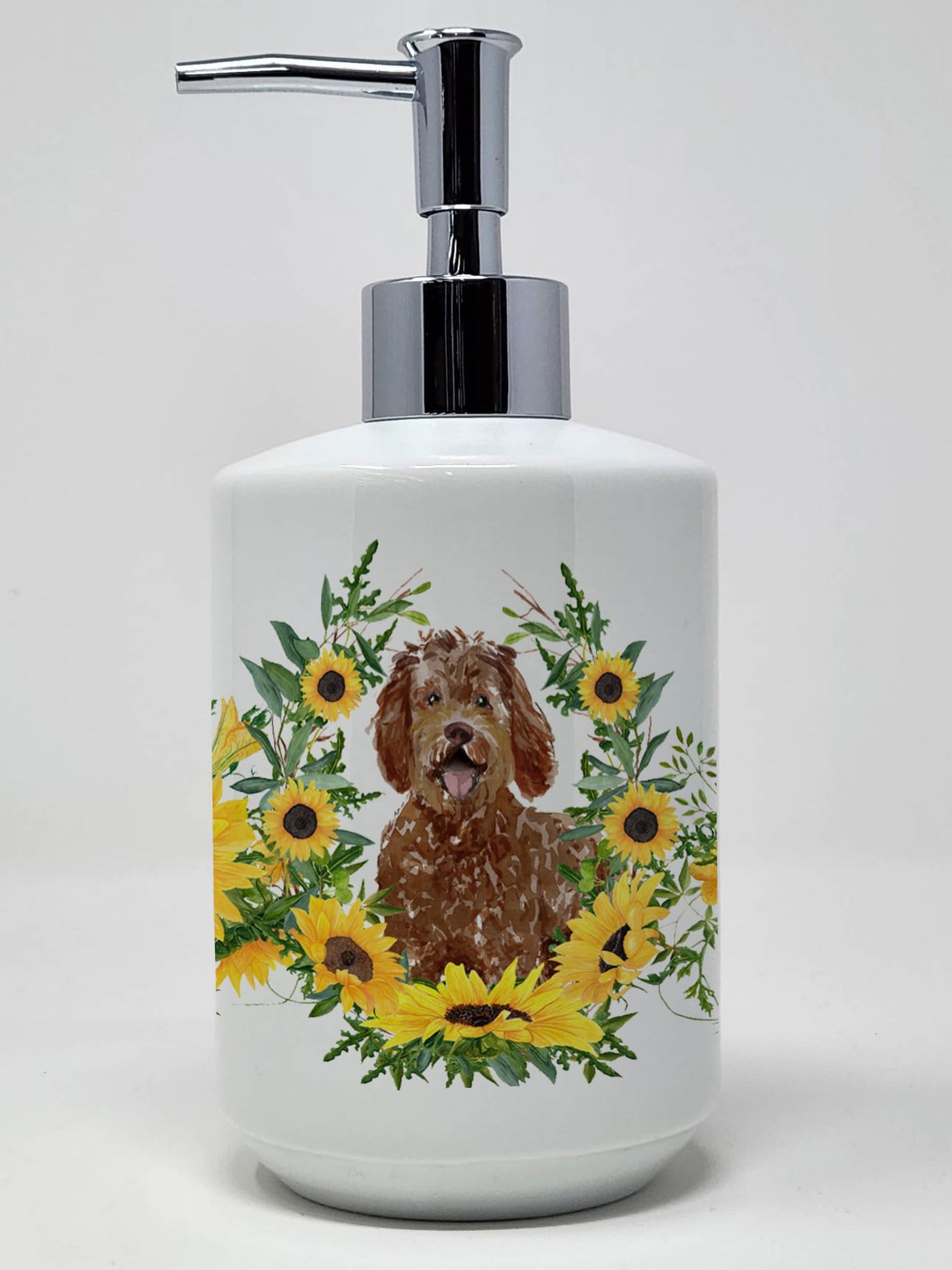 Caroline'S Treasures Ck2973Soap Japanese Spitz In Sunflowers Ceramic Soap Dispenser Hand Soap Dispenser Pump Bottles For Bathroo