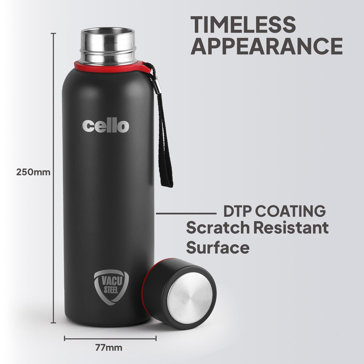 The bottles are equipped with a Unique DTP coating that guarantees long-term protection against fading, scratching, and peeling, maintaining their pristine condition over time. A range of colours and an elevated matt finish improves the overall look of the bottles.