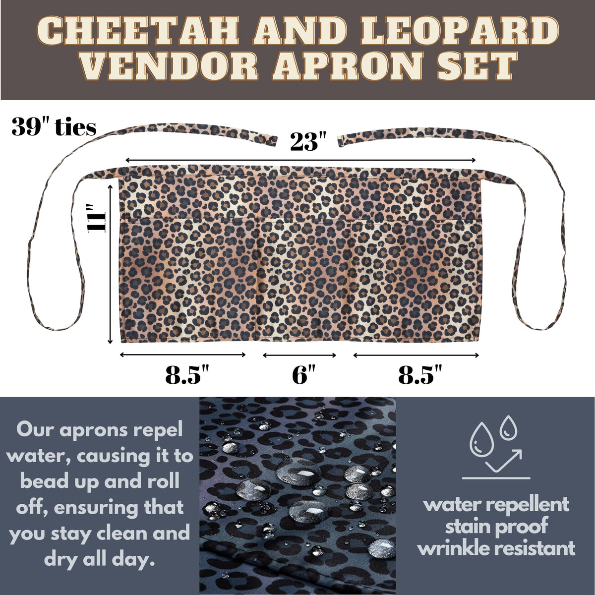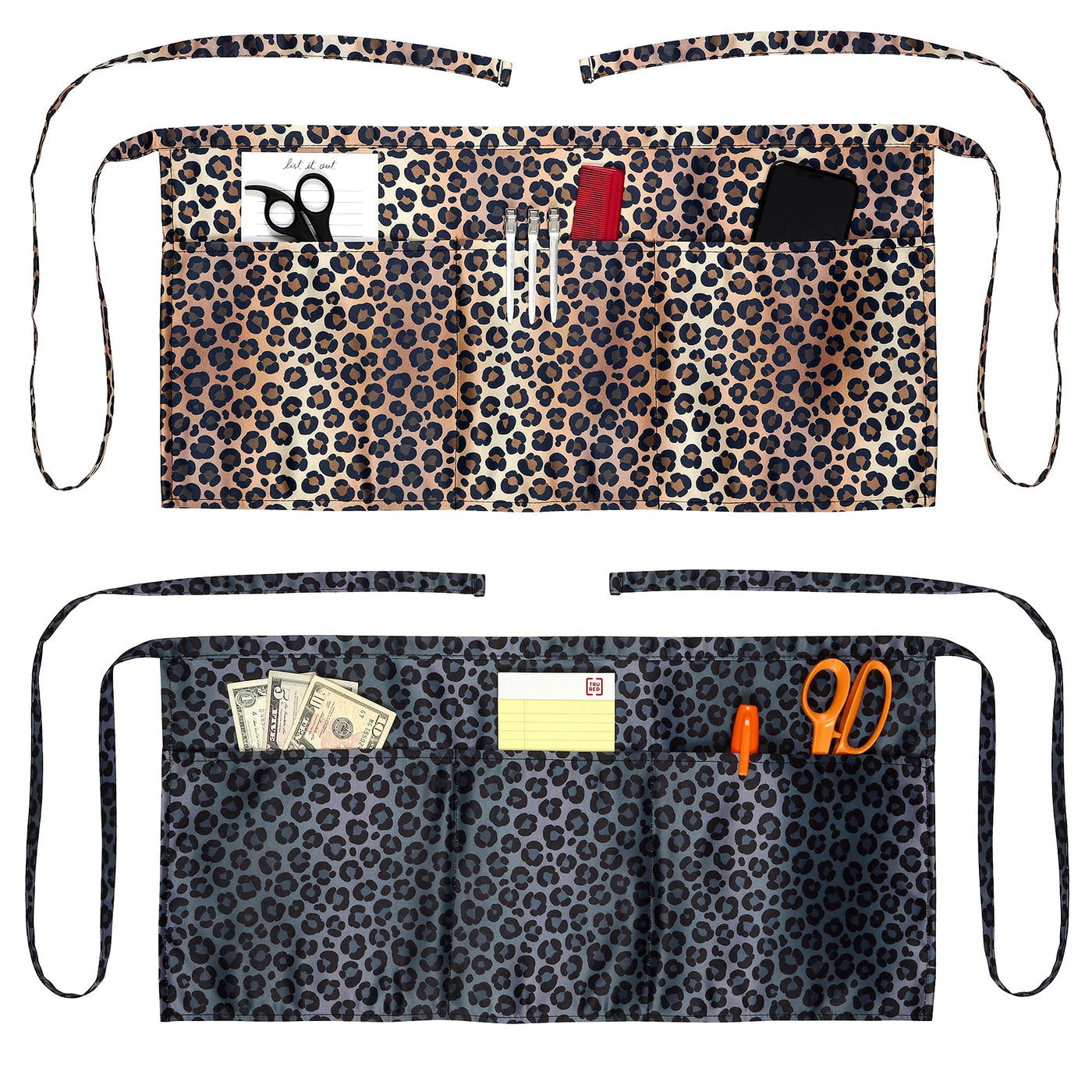Cheetah Leopard Cute Waitress Apron With Pockets, Teacher Apron, Server Apron 2-Pack For Waitress, 3 Pockets Half Waist Aprons,