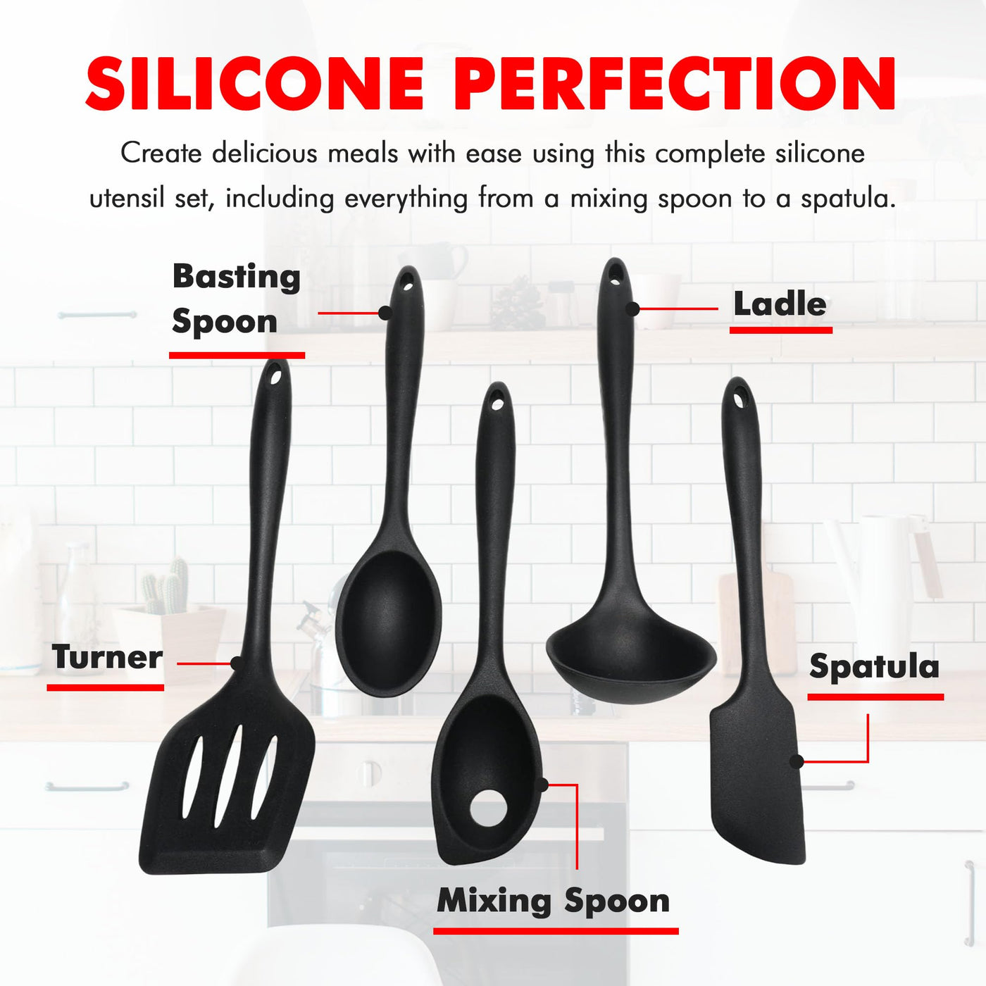 • Q: What utensils are included in the Chef Craft Premium Silicone Kitchen Tool and Utensil Set? A: The set includes a turner, basting spoon, mixing spoon, ladle, and spatula.