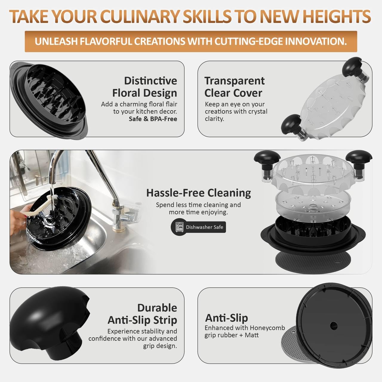 • Q: How does the anti-slip base work? A: The anti-slip base is made of heat-resistant silicone that keeps the shredder stable during use, preventing it from sliding around.
