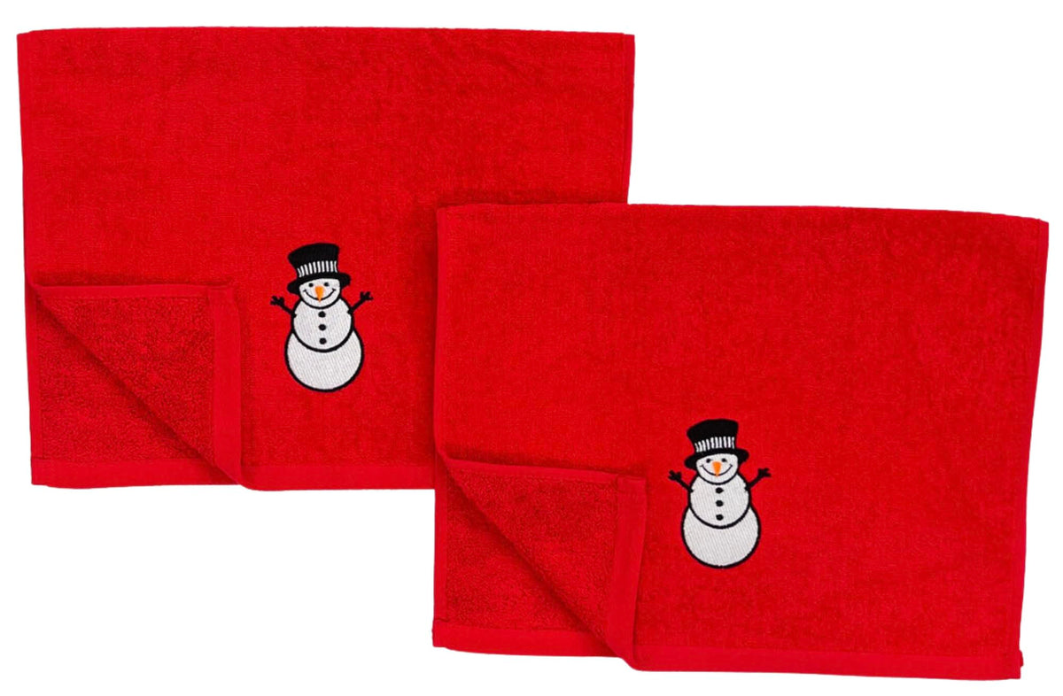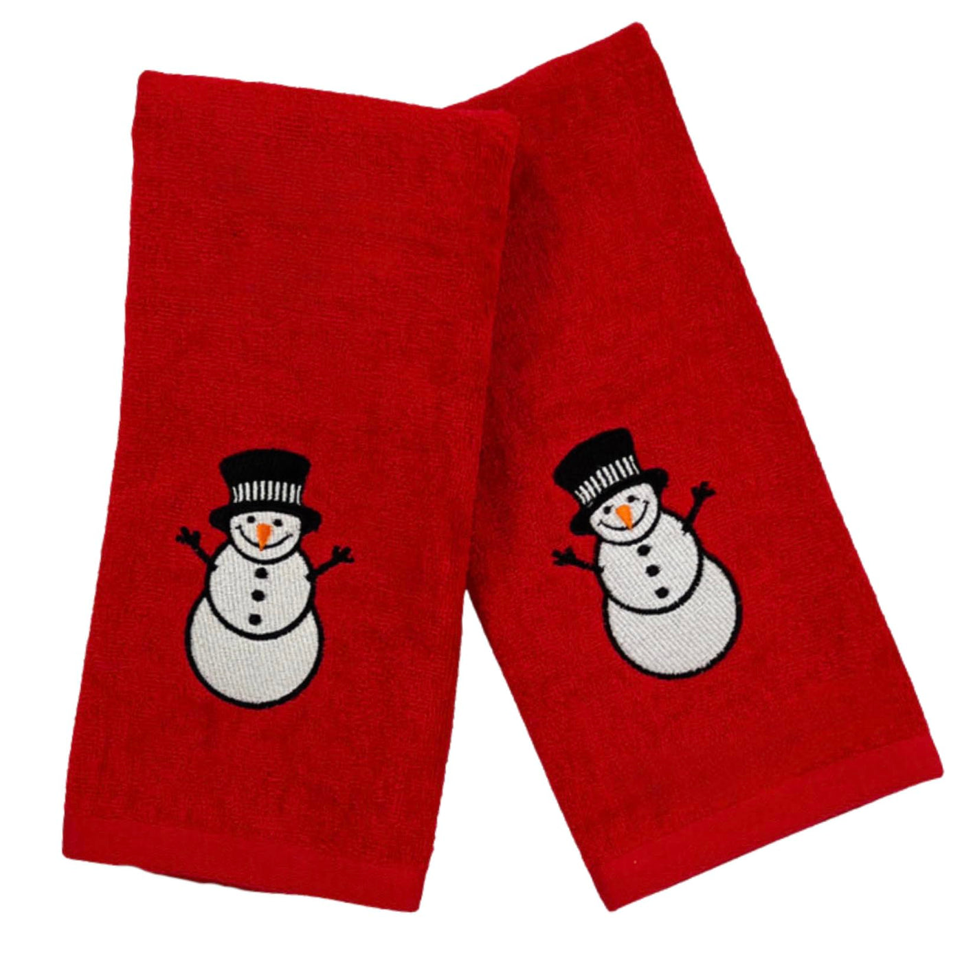 - Q: What are the dimensions of the Christmas Holiday Red Snowman Hand Towels? A: The dimensions of the towels are 16 inches by 25 inches.