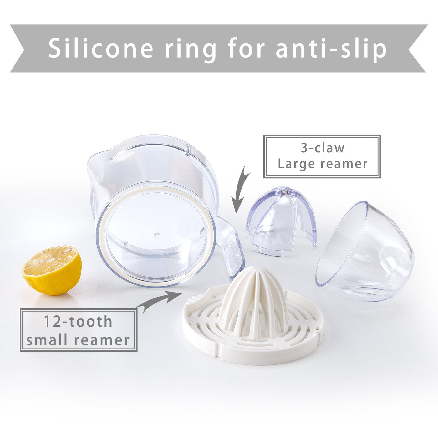 - Q: Can I use this juicer for different types of citrus fruits? A: Absolutely! The juicer comes with a 12-tooth reamer for lemons and limes, and a 3-claw large reamer designed for oranges and larger fruits.