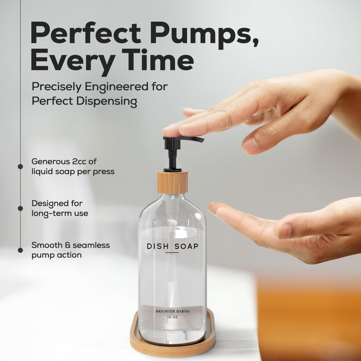 Clear Glass Dish Soap Dispenser For Kitchen Sink By Brighter Barns - Kitchen Soap Dispenser Set With Bamboo Tray - Modern Kitche