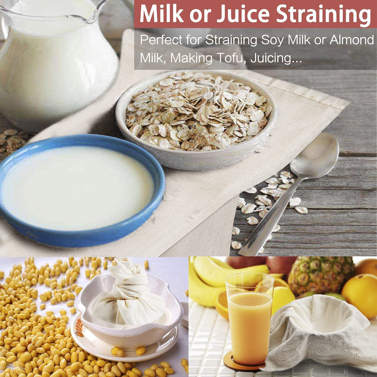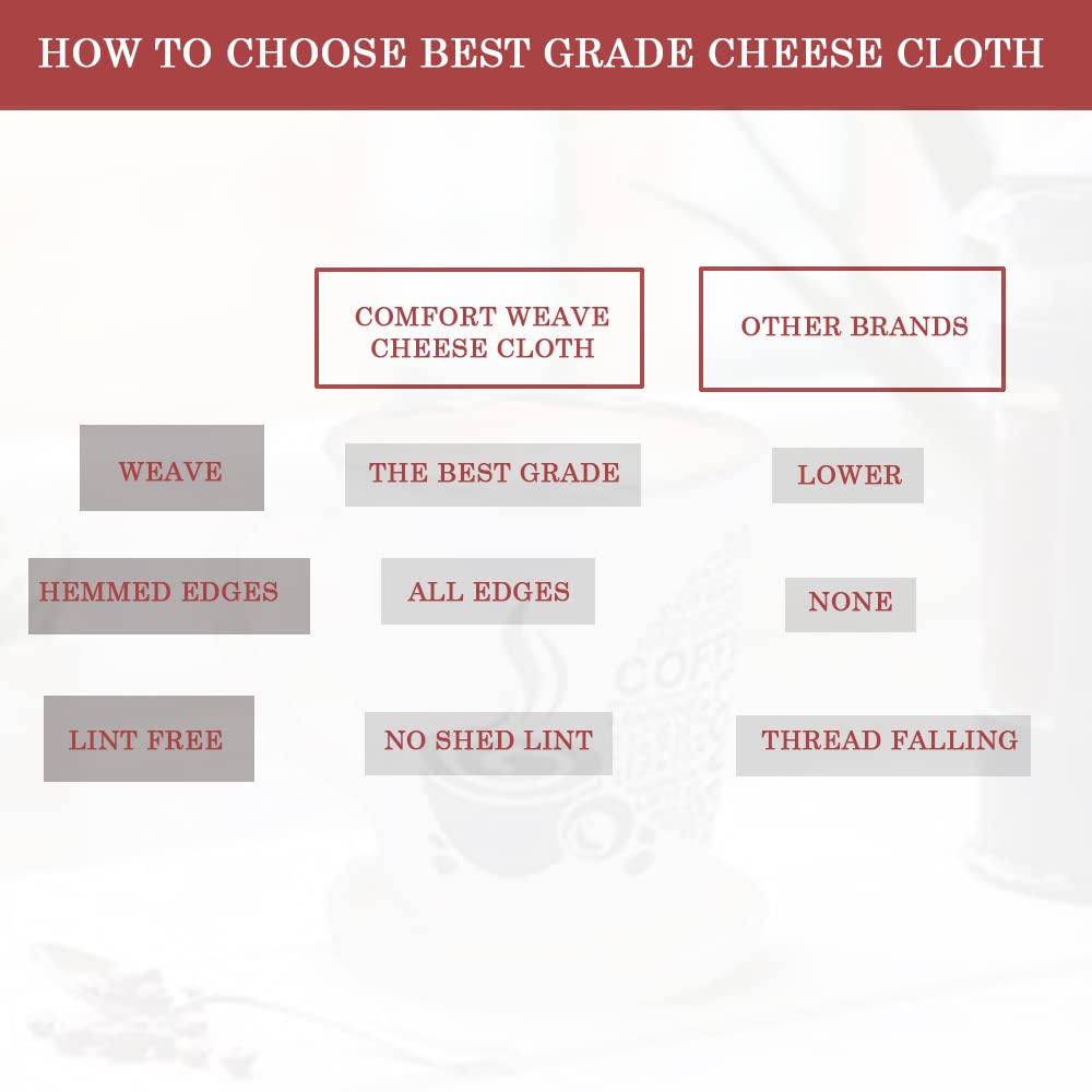 COMFORT WEAVE CHEESE CLOTHS, GRADE 100, 20X20 Inch Hemmed Cheesecloth, 100% Unbleached Muslin Cloth - 6 PCS