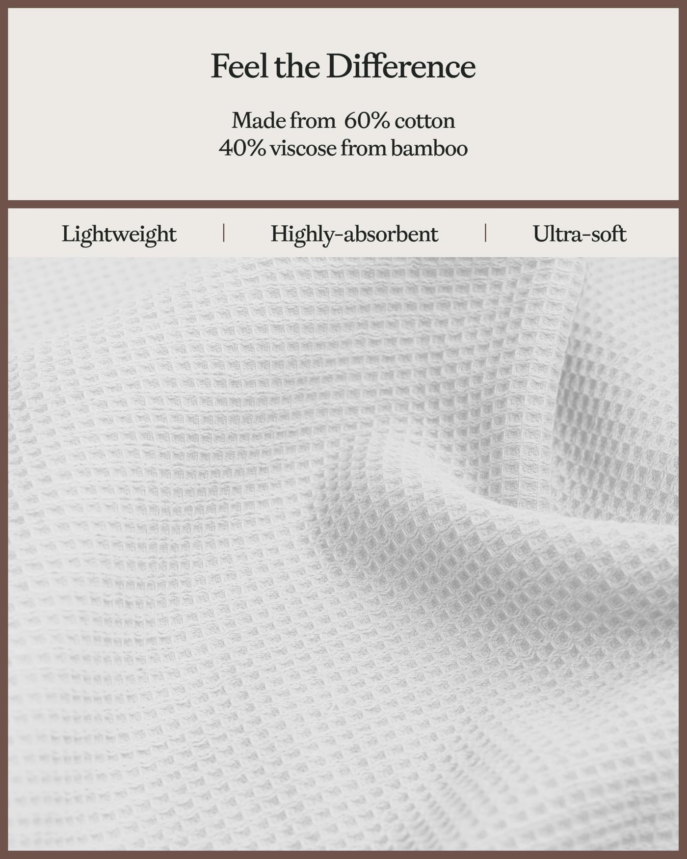 • Q: What materials are used in the Cozy Earth Waffle Hand Towels? A: These hand towels are made from a premium blend of 60% cotton and 40% viscose from bamboo.