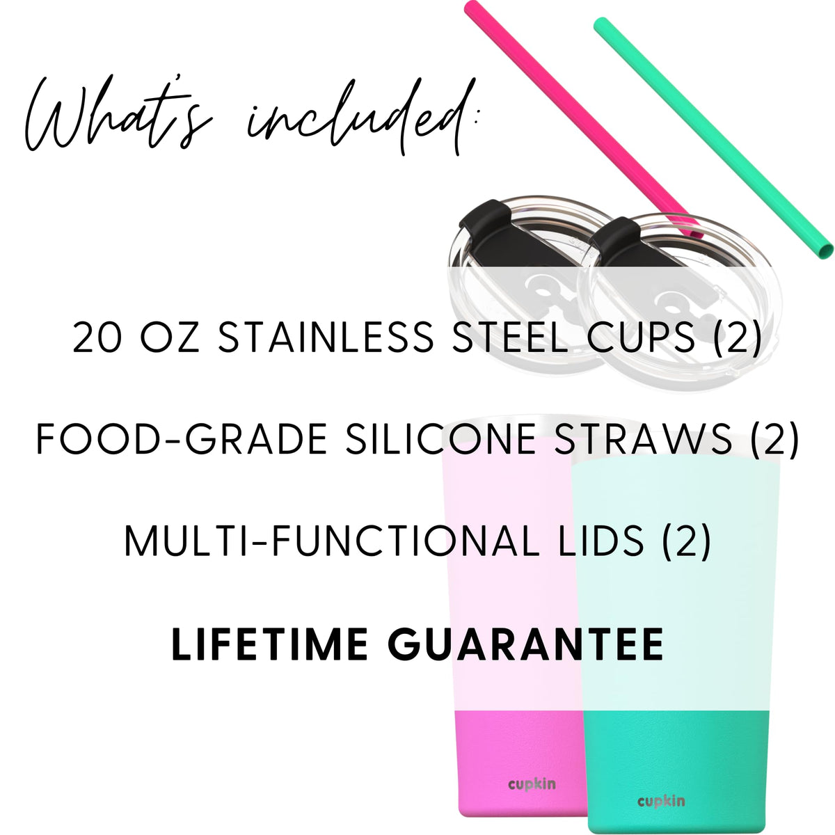 - Q: Does the Cupkin tumbler come with a straw? A: Yes, each Cupkin tumbler comes with a matching food-grade silicone straw for a perfect fit and leak-proof experience.