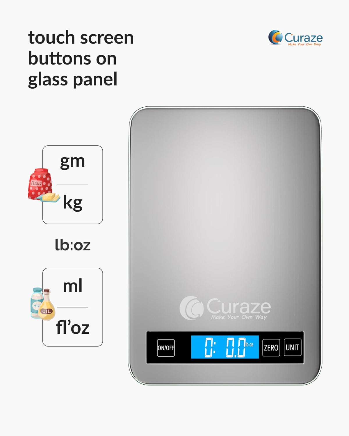 Curaze Digital Food Weight Machine For Kitchen Up To 10 Kg Capacity - Accurate Kitchen Weighing Scale For Home Baking, Cooking &