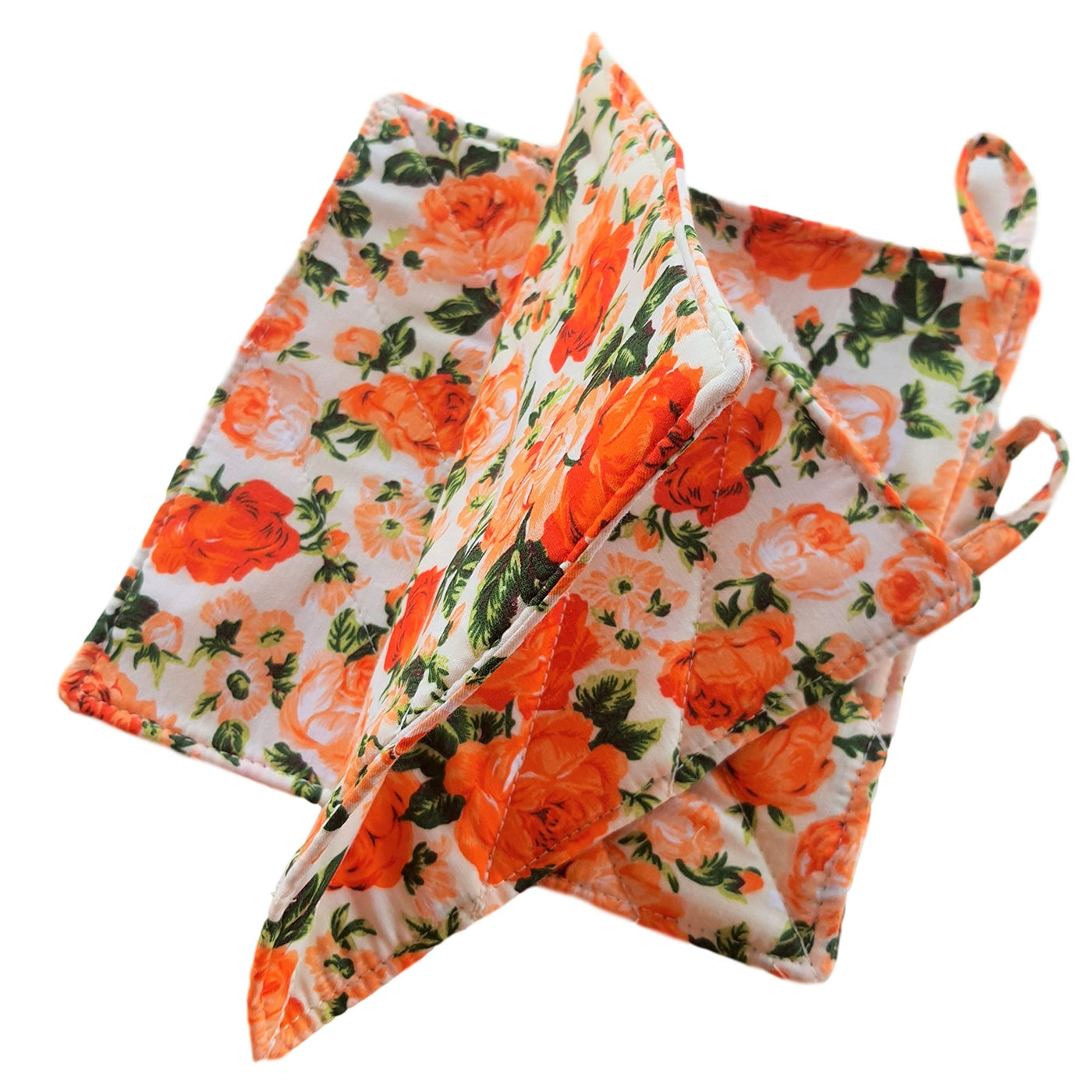 Cushystore Floral Blossom Garden Flower Pot Holder Oven Pads Potholders For Cooking Kitchen 7.75'', 2 Pack (Orange)