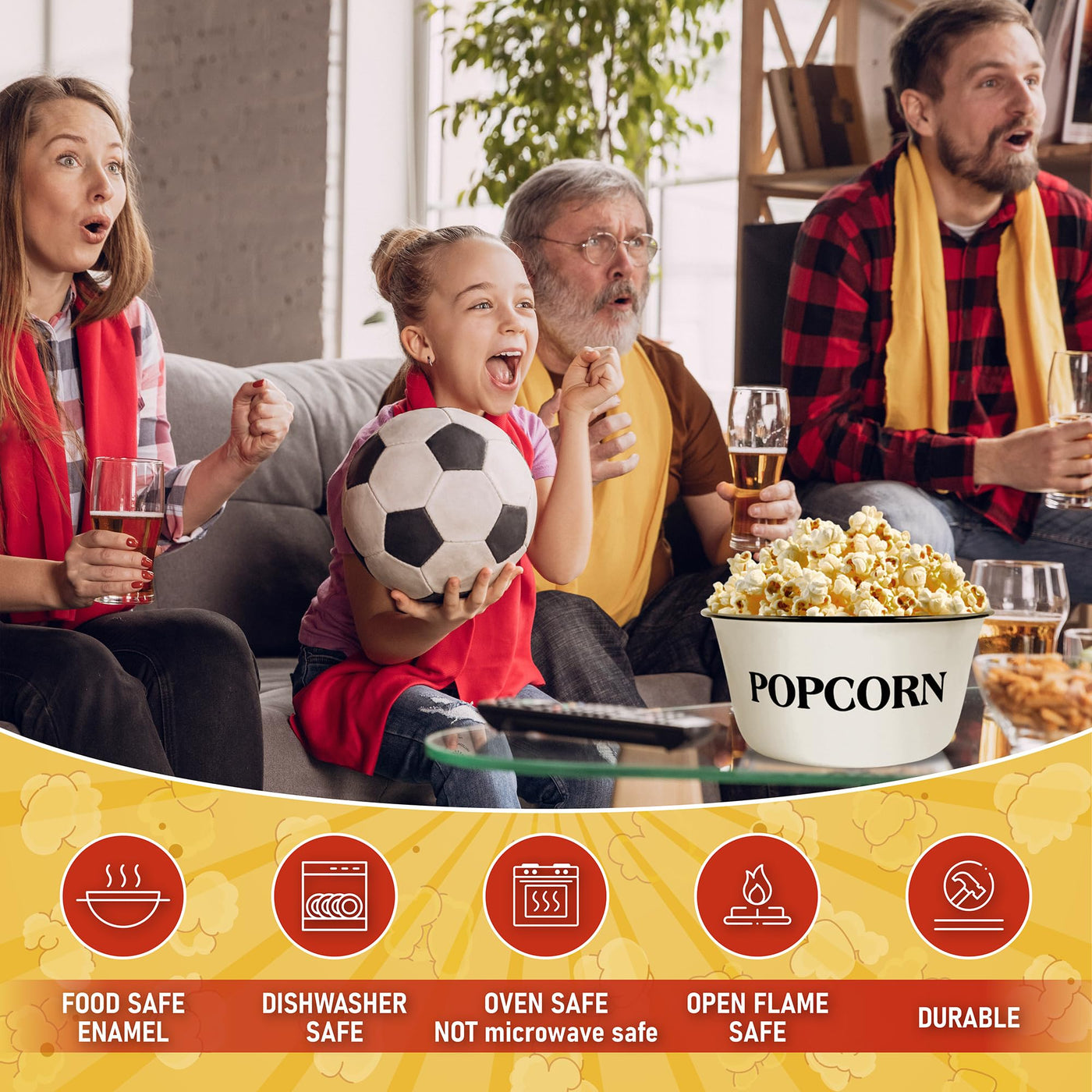 • Q: Can I use this bowl for purposes other than popcorn? A: Yes, the bowl is versatile and can be used for serving various snacks like potato chips, nachos, salads, and more.