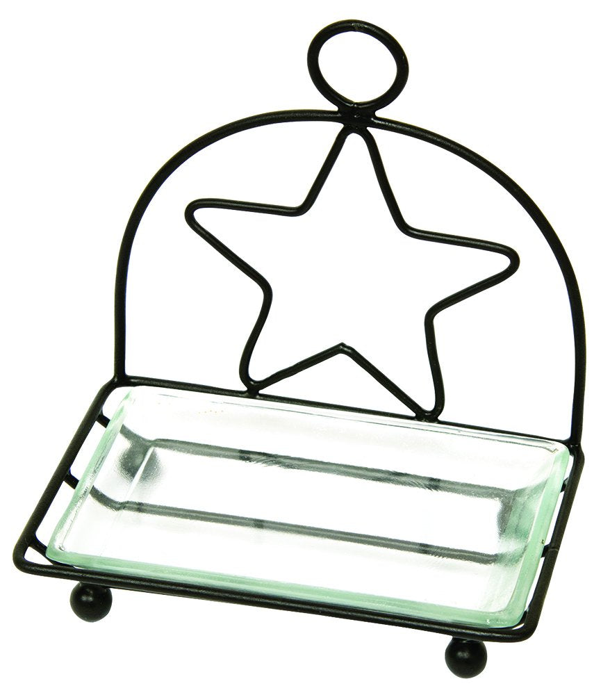 • Q: What is the style of the soap dish? A: The soap dish features a rustic country style with a black metal frame and star design.