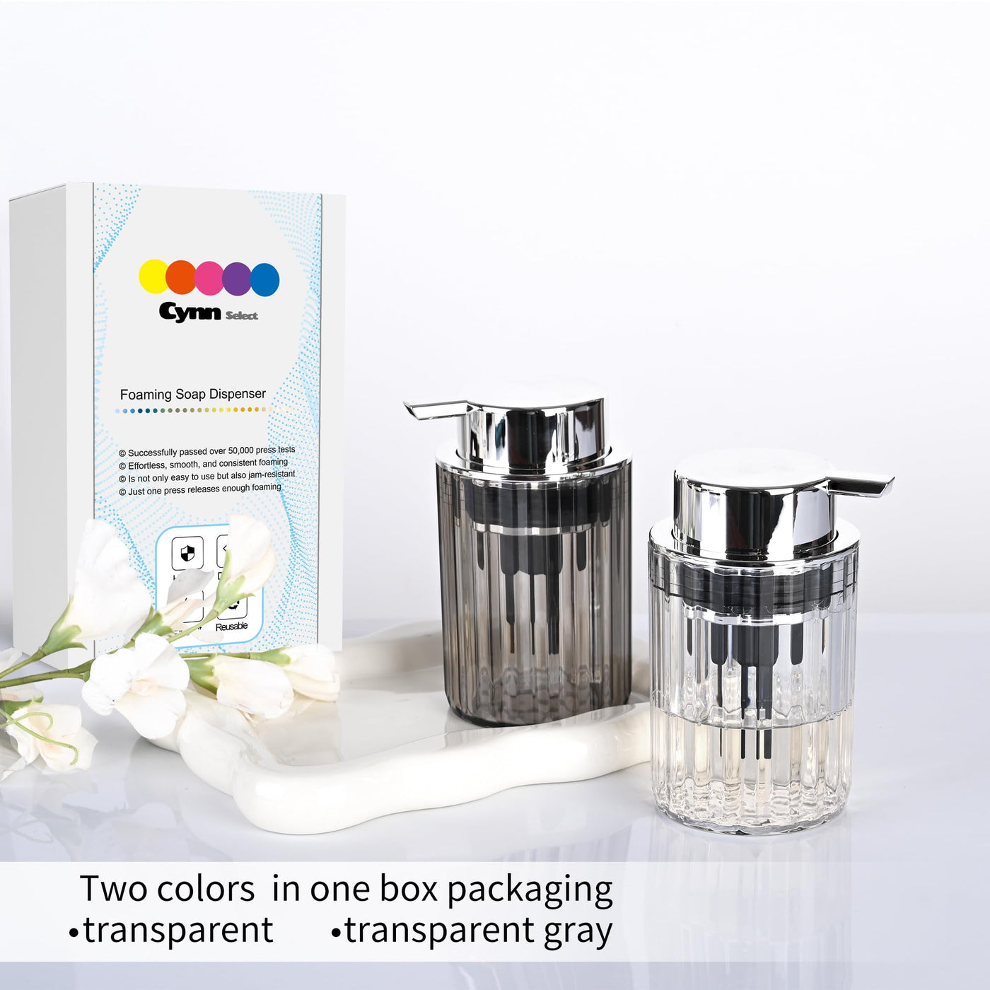 Cynn Select Foaming Soap Dispenser,2Pack Light Clear And Gray Clear,Plastic Refillable Soap Dispenser,Hand Soap Dispenser,Soap D