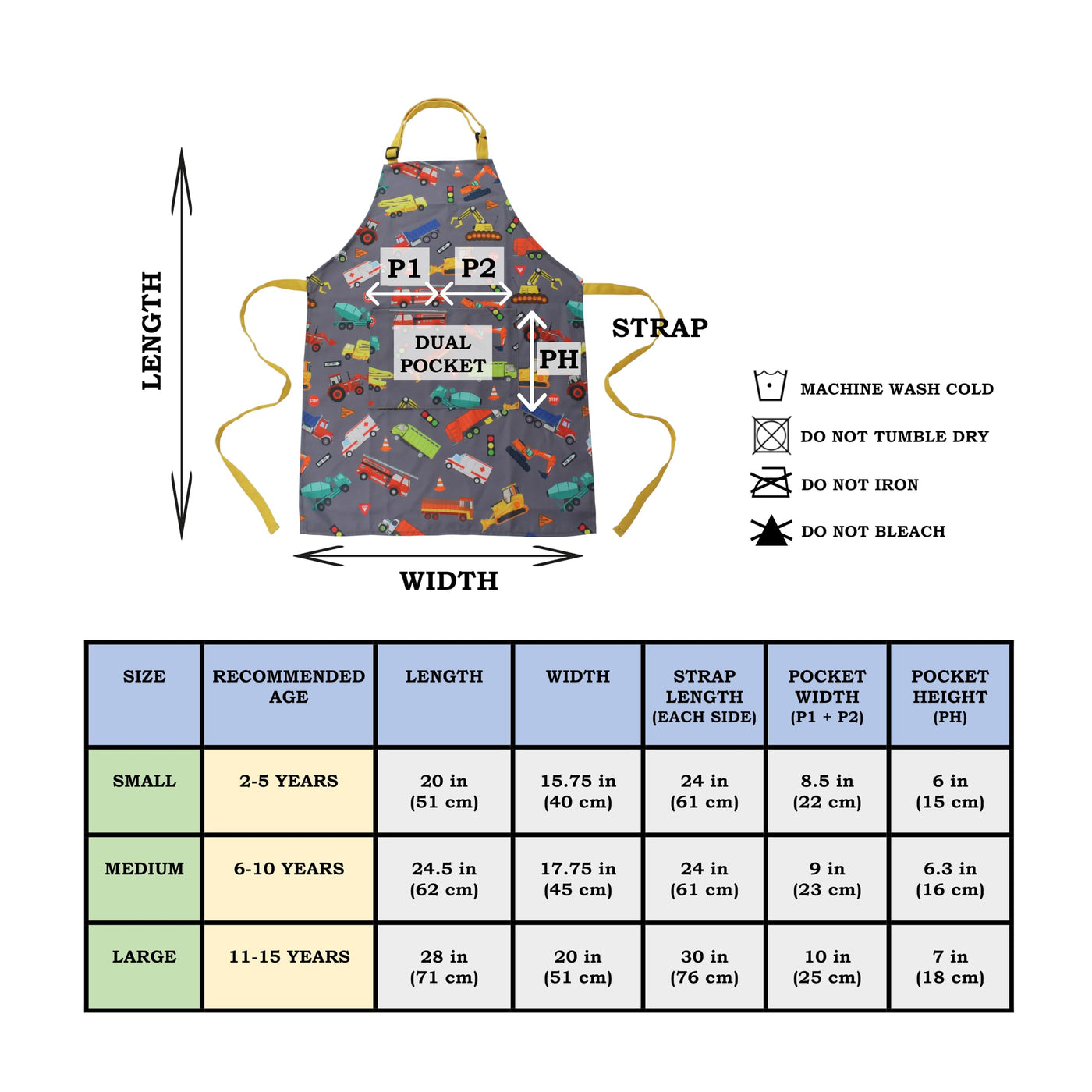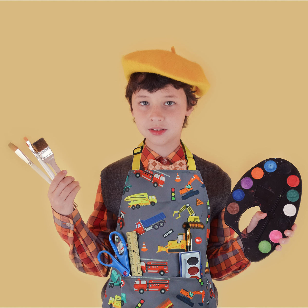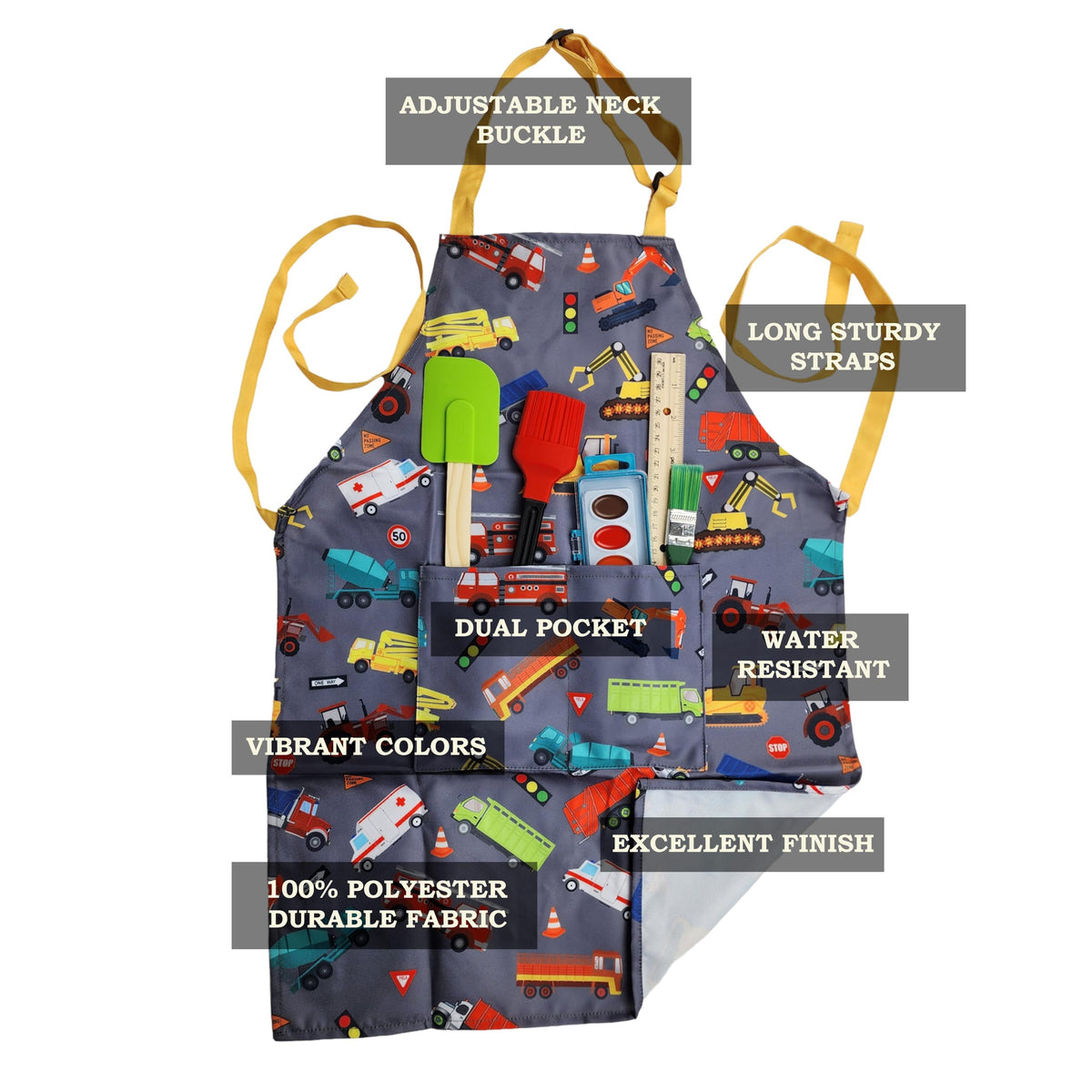 Dashn Products Kids Apron - Truck - Dual Pockets - Chef Kitchen Cooking Garden Artist Painting Cleaning Baking Pottery Gift Boys