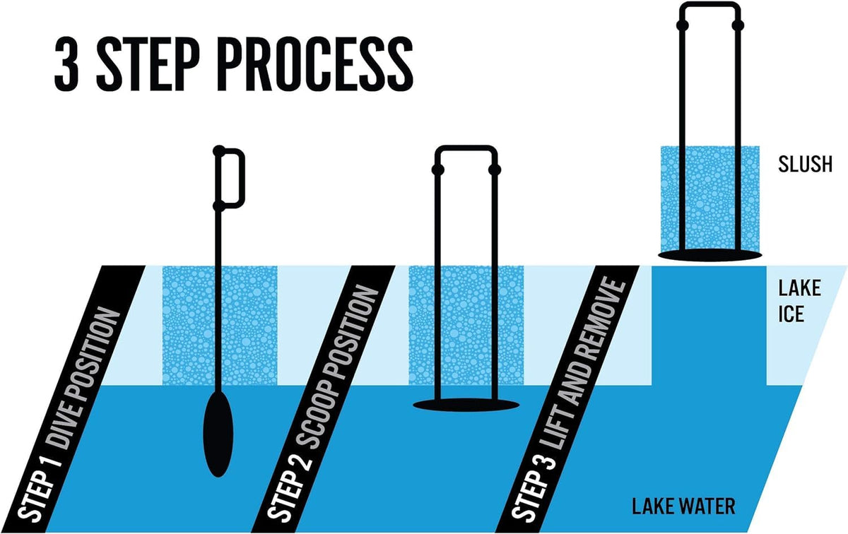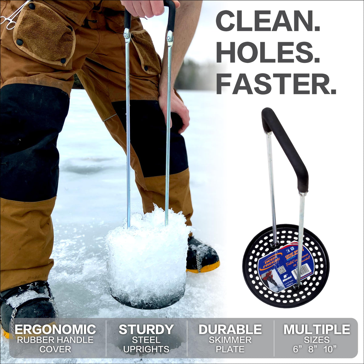 • Q: How does the skimmer improve my ice fishing experience? A: The skimmer efficiently removes slush from your ice fishing hole, saving you time and effort so you can focus more on fishing rather than cleanup.