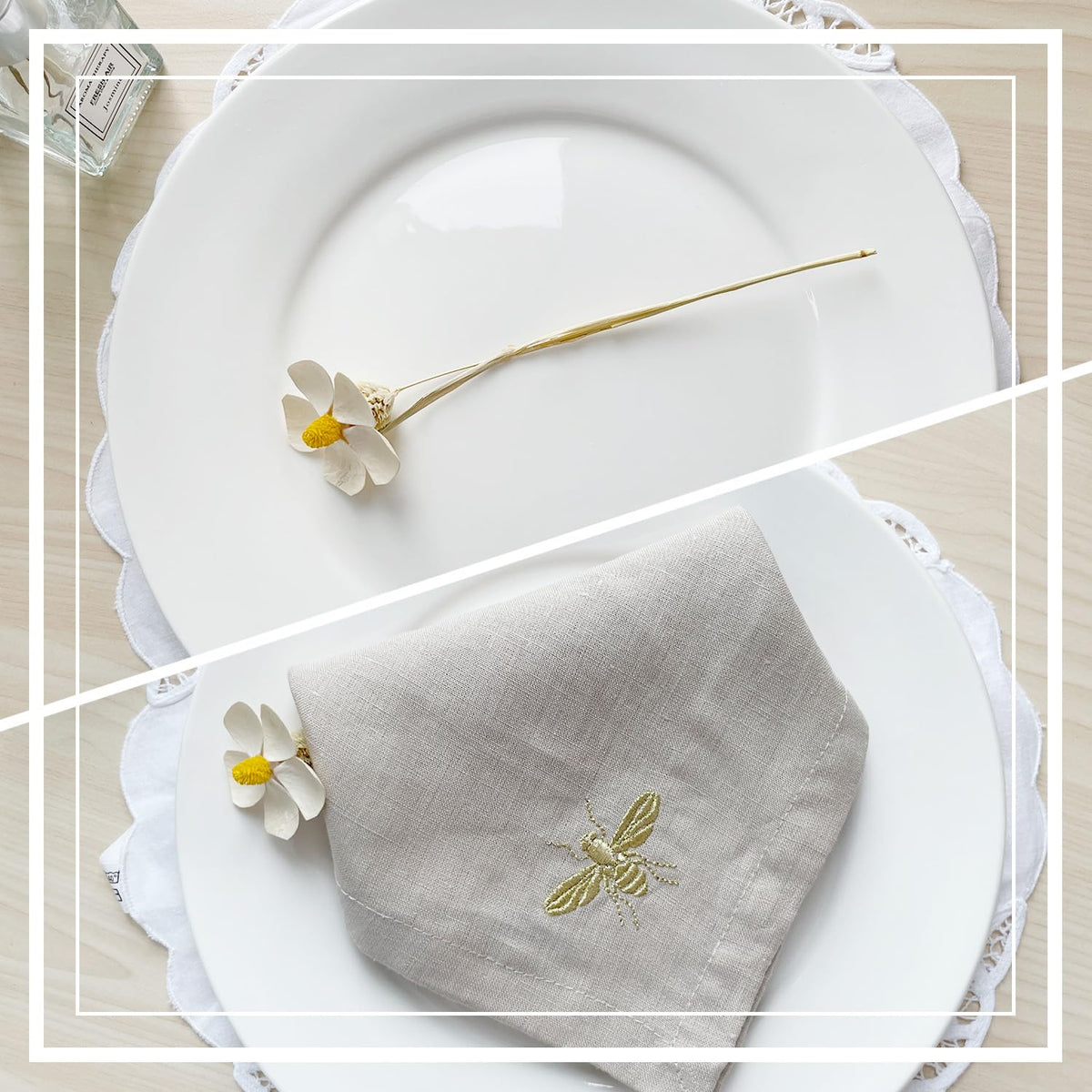 - Q: Can these napkins be used with different table settings? A: Yes, the timeless and chic design of these napkins complements a variety of table settings and décor styles.