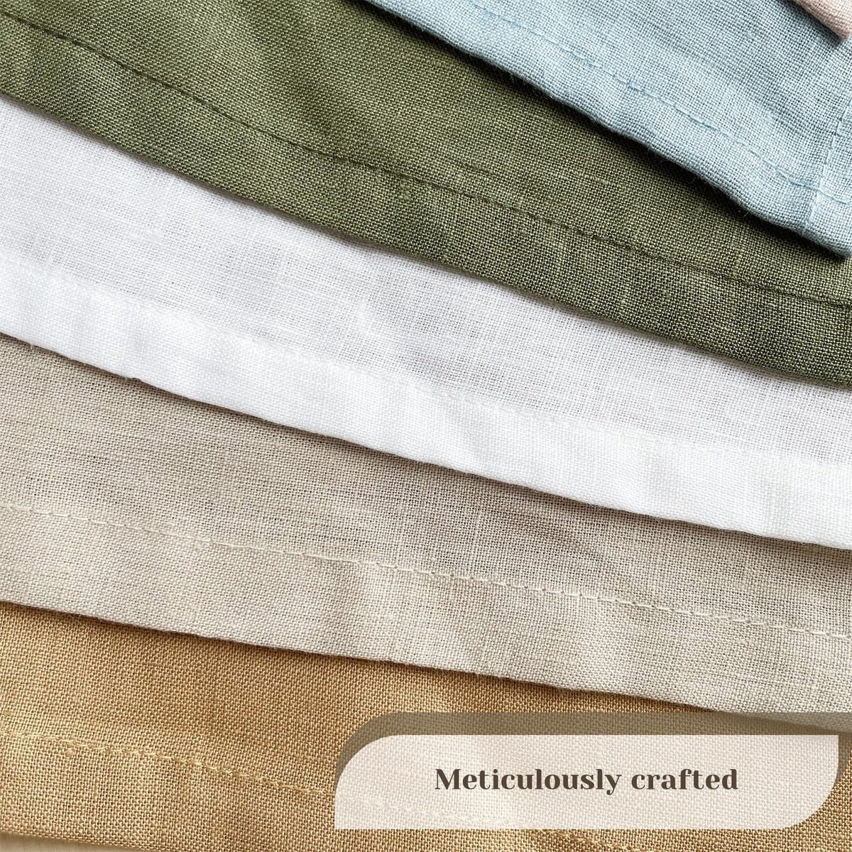 - Q: How do I care for these linen napkins? A: To maintain the quality, machine wash with non-chlorine bleach if necessary, tumble dry on low, and iron on a warm setting.