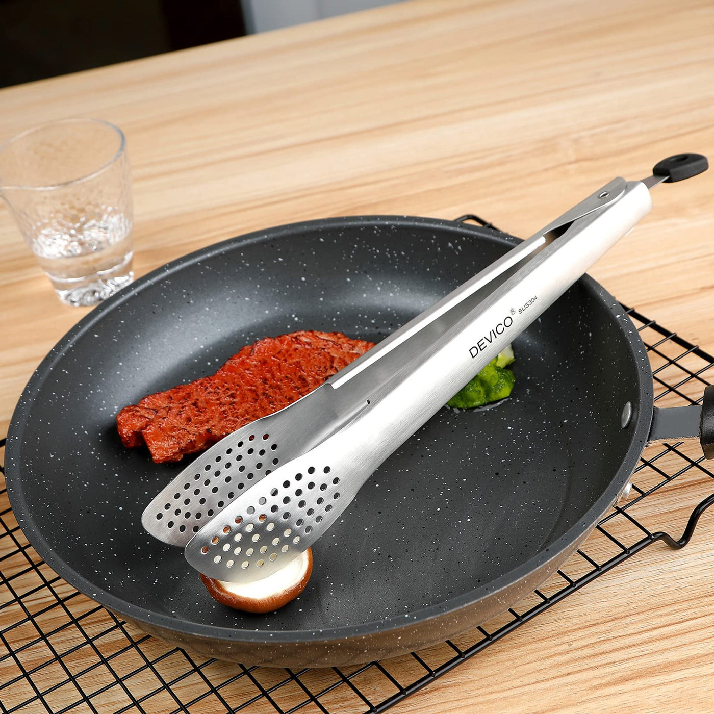 Devico Kitchen Tongs For Cooking, 2-Piece 12 Inch 18/8 Stainless Steel Metal Bbq Grill Tongs With Lock