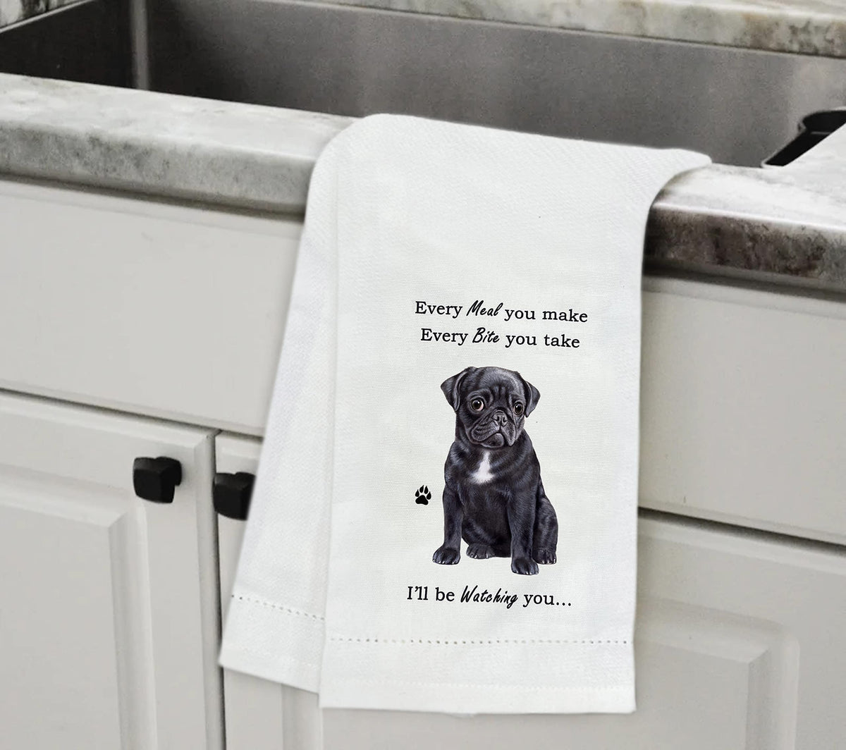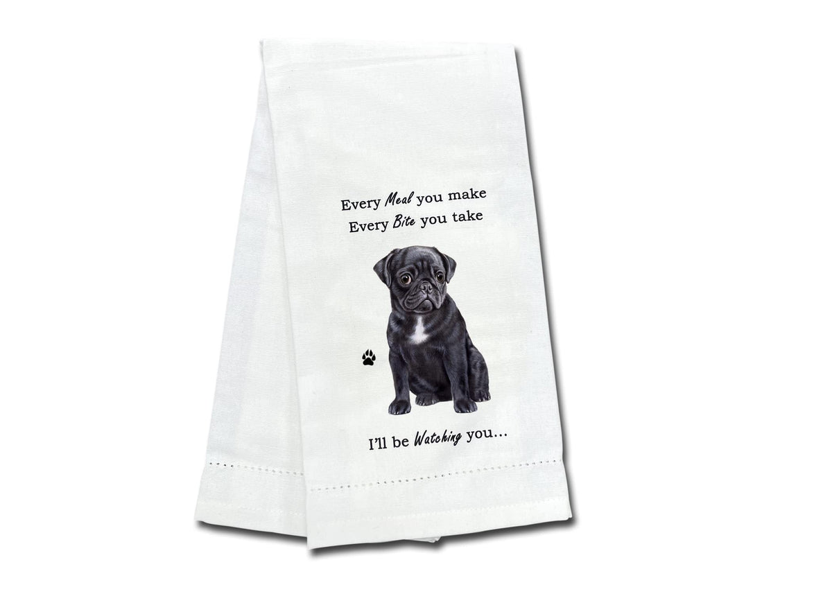 E&S Imports Black Pug Kitchen Towel - Soft Highly Absorbent - Black Pug Gifts - Dish Towels For Washing Dishes - Tea Towels - Re