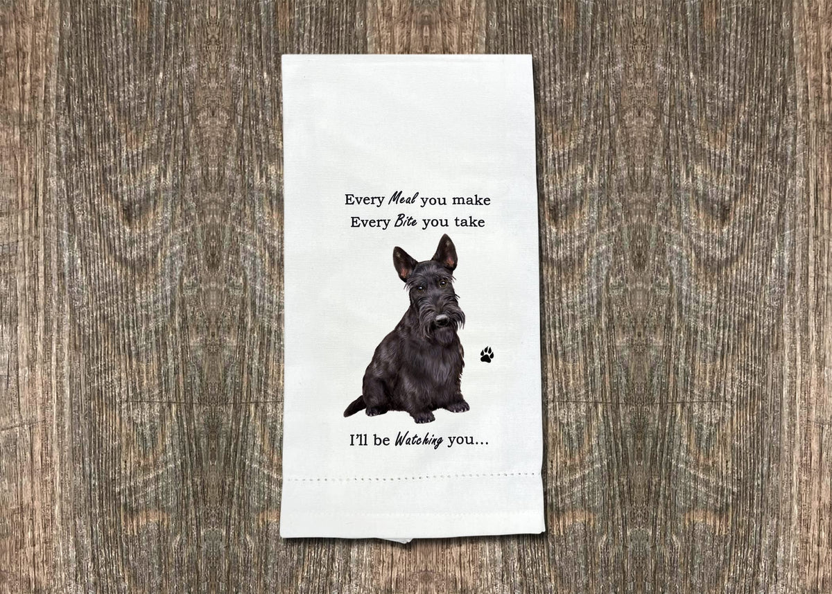 • Q: Can this towel be used as a gift? A: Absolutely! It makes a great gift for Scottie dog owners or as a charming home decor accent.