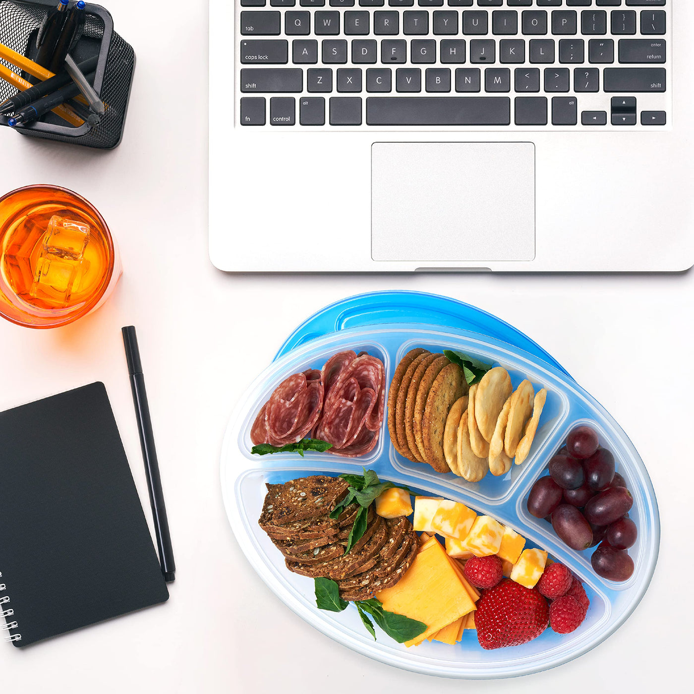Easylunchboxes - Oval Lunch Boxes - Reusable 4-Compartment Food Containers For Work, Travel And Meal Prep, Set Of 4, (Classic)