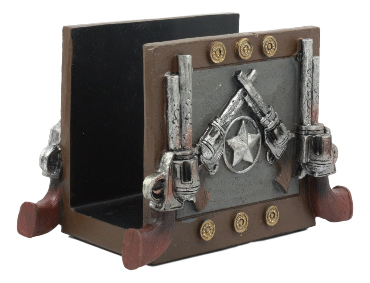 Ebros Rustic Country Wild West Texas Star And Six Shooter Pistols Country Western Cowboy Napkin Holder Decorative Figurine As Ki