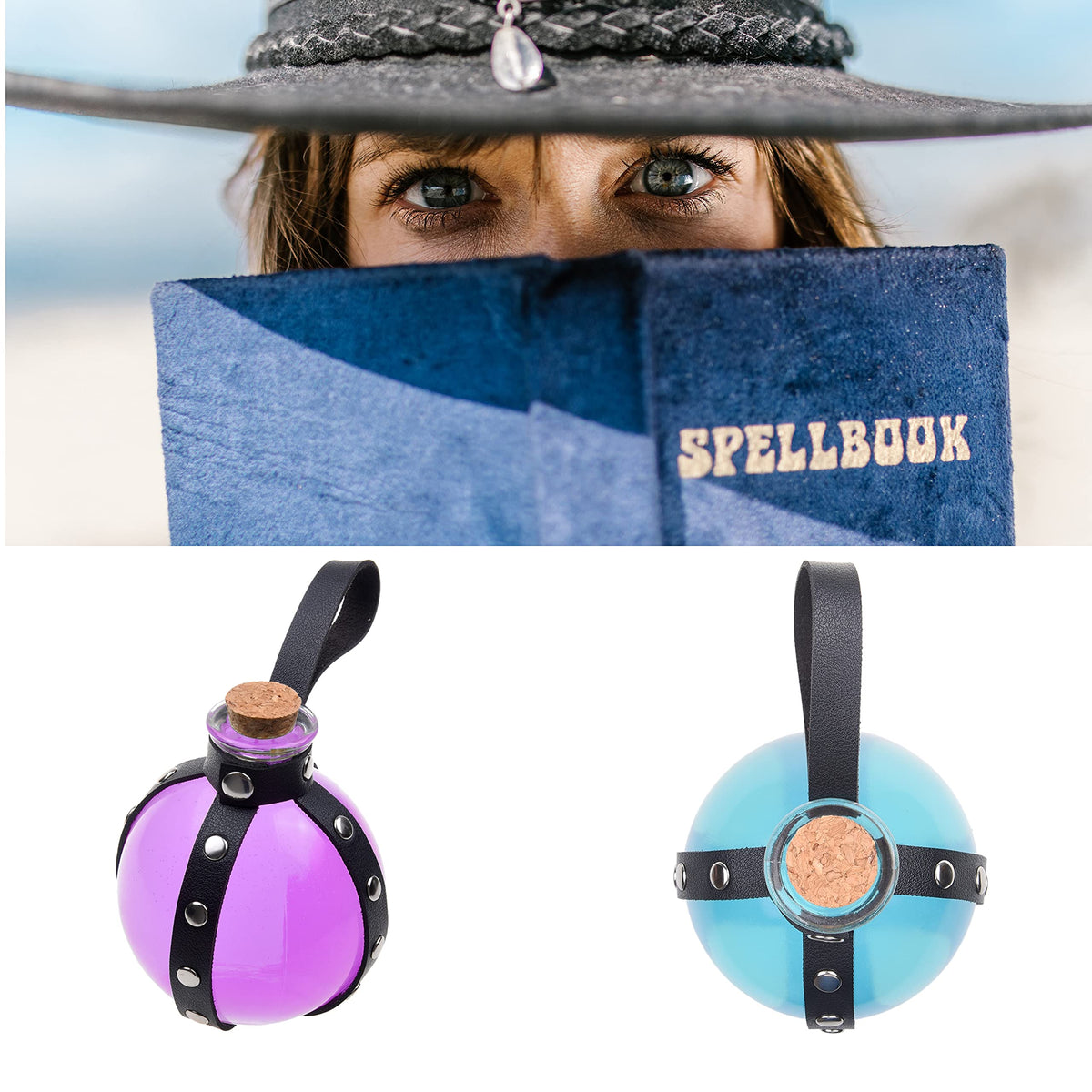 DIY CRAFTING GLASS BOTTLE ? The spherical ball glass bottle is transparent, thick, and well made. A perfect accessory to add to your witch or warlock costume. The old-fashioned elegant container is also perfect for wines, essential oils and more. | LEATHER SLEEVE INCLUDED? A stylish sleeve with a belt loop holds the bottle securely. The elegant faux leather black holder makes the bottle a wearable or a hand-carry item. The strap slides perfectly onto a belt and the bottle can be taken out even without removing it from the sleeve. | WITH REMOVABLE CORK CLOSURE ? Safe, environment-friendly no leak cap is included. The recyclable cork stopper also gives the bottle a vintage look. The cork cap seals tightly and keeps the content from spilling. | MEDIEVAL THEMED DECORATION ? This nice little potion bottle can help achieve a medieval-themed vibe. An awesome prop for themed parties and photoshoots. Perfect DIY, art projects and crafting activities. | COSTUME COSPLAY ACCESSORY ? Fill the bottle with a colored liquid or your version of a magical potion and have fun role-playing as a wizard, a warlock or a sorcerer. Enjoy attending Cosplay events, Renaissance fairs, Halloween parties with the look that you are going for.