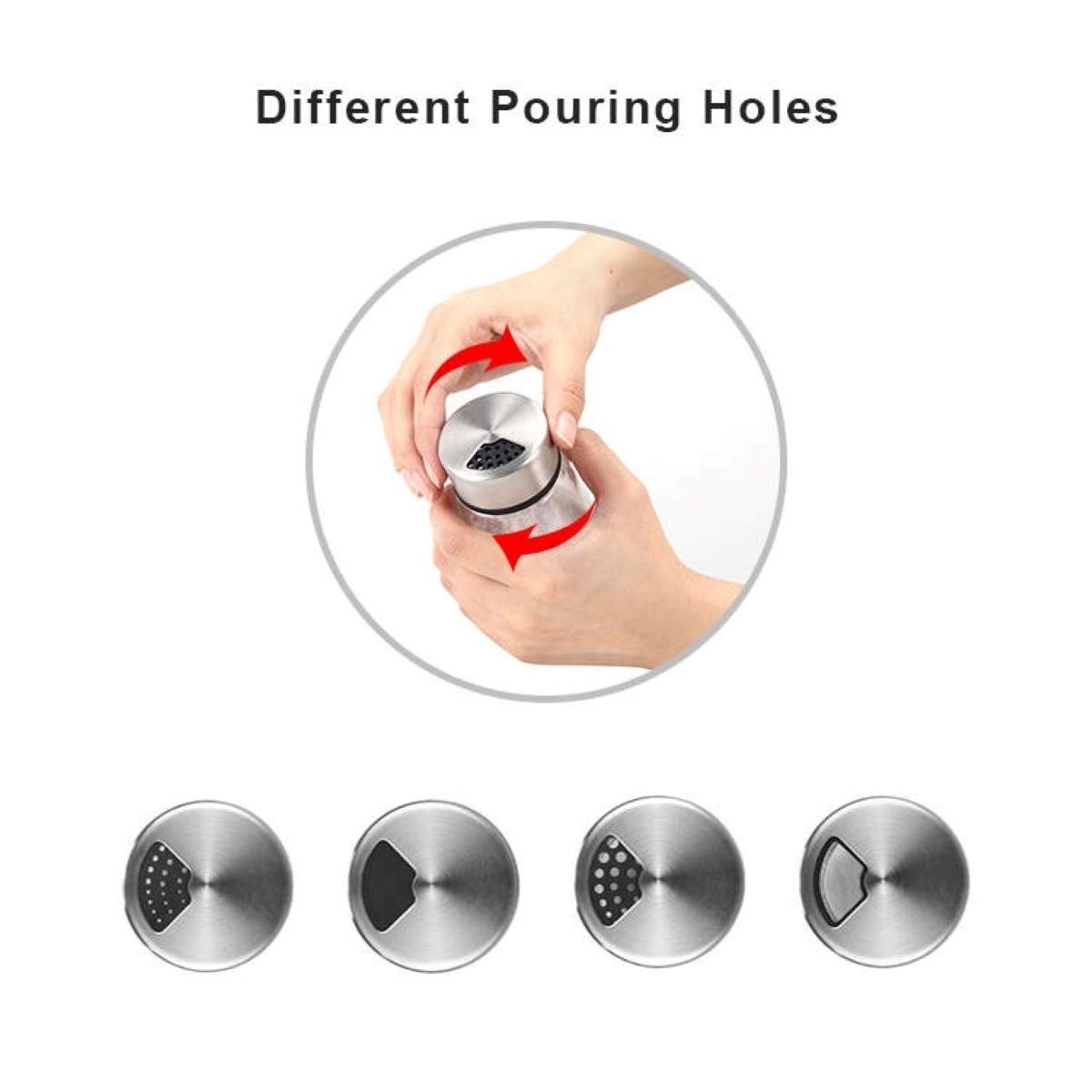 - Q: How do the adjustable pour holes work? A: The shakers feature a turning dial that allows you to choose different pour hole sizes for controlled dispensing of spices.