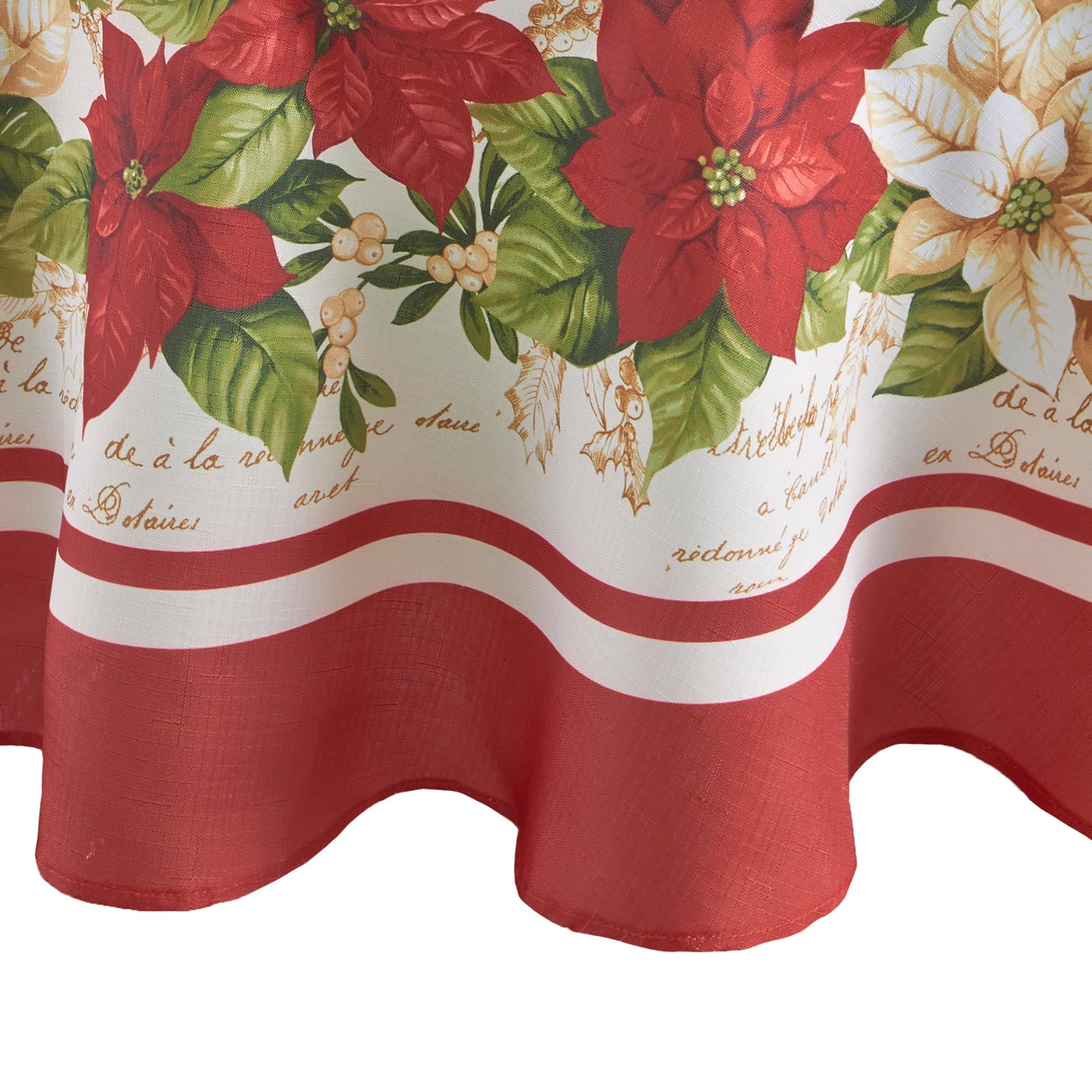 Elrene Home Fashions Red And White Poinsettia Holiday Fabric Wrinkle Resistant Tablecloth, 70'' Round, Multi