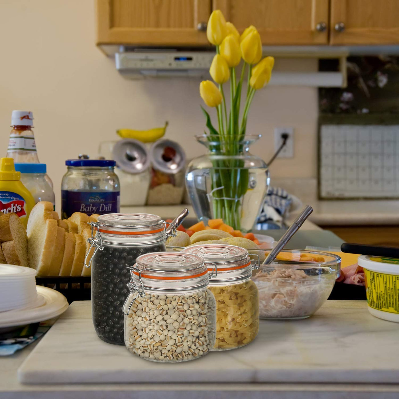 Encheng 25 Oz Glass Jars With Airtight Lids And Leak Proof Rubber Gasket,Wide Mouth Mason Jars With Hinged Lids For Kitchen Cani