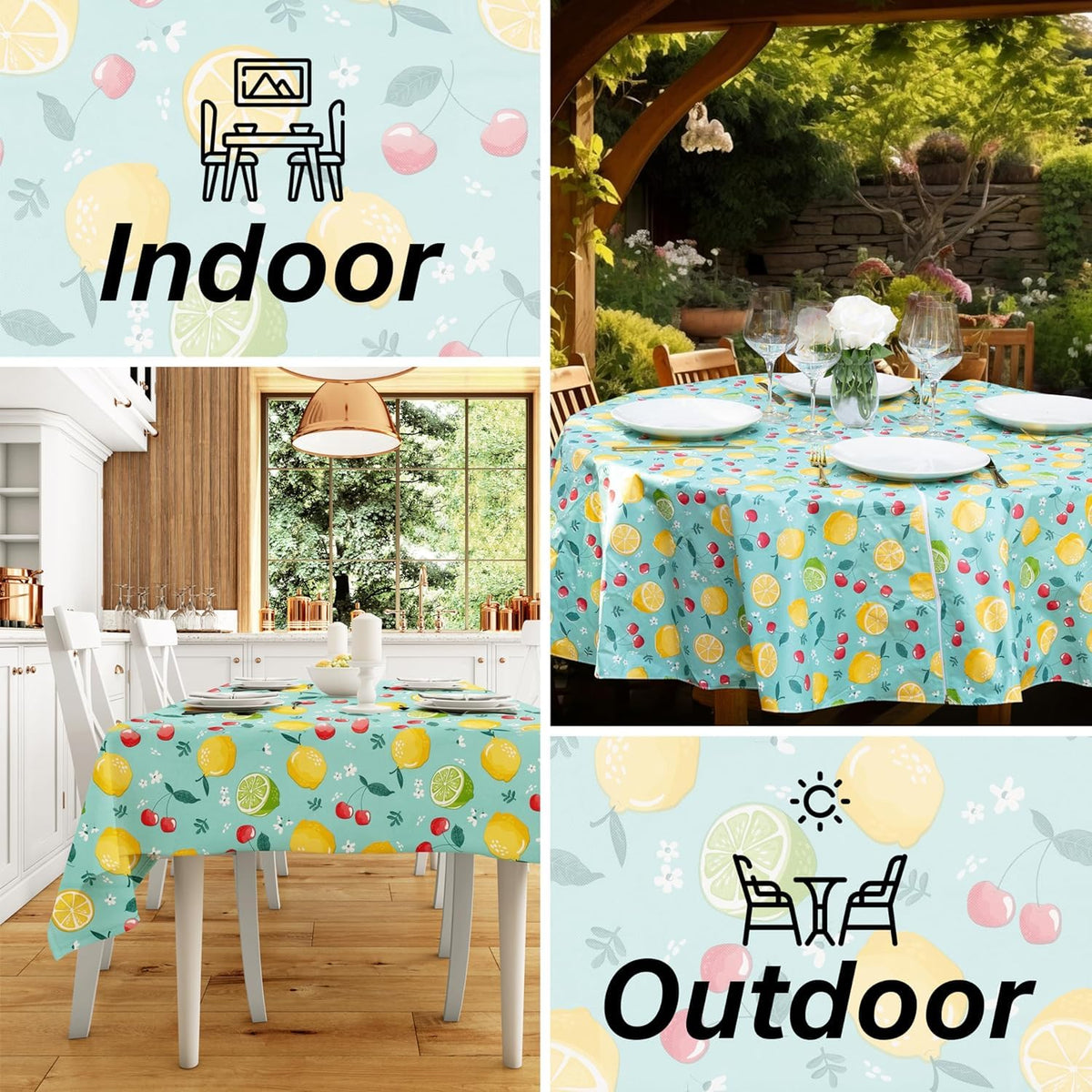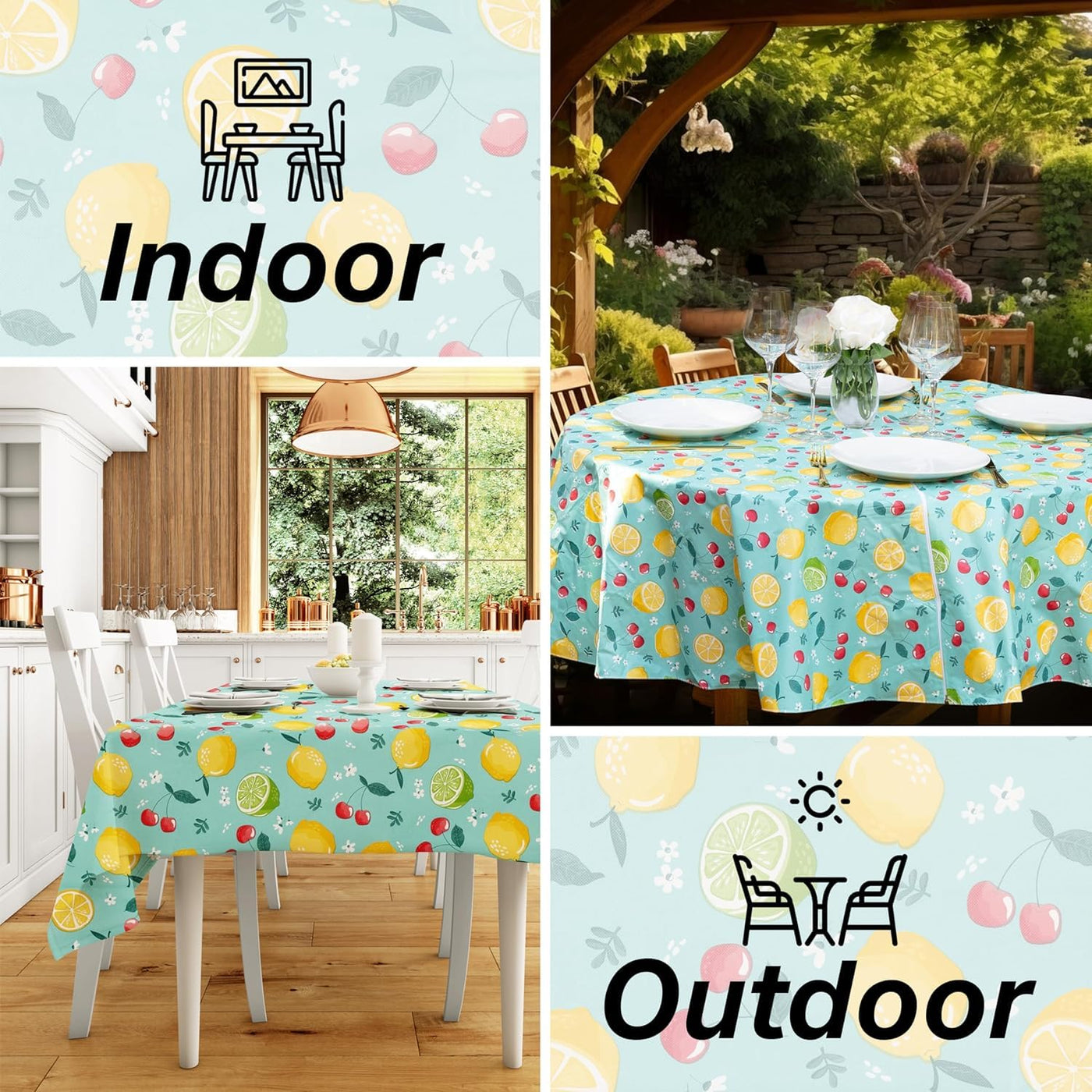 - Q: What colors or designs are available for this tablecloth? A: This tablecloth features a decorative design of lemons and cherries, adding a vibrant touch to your decor.