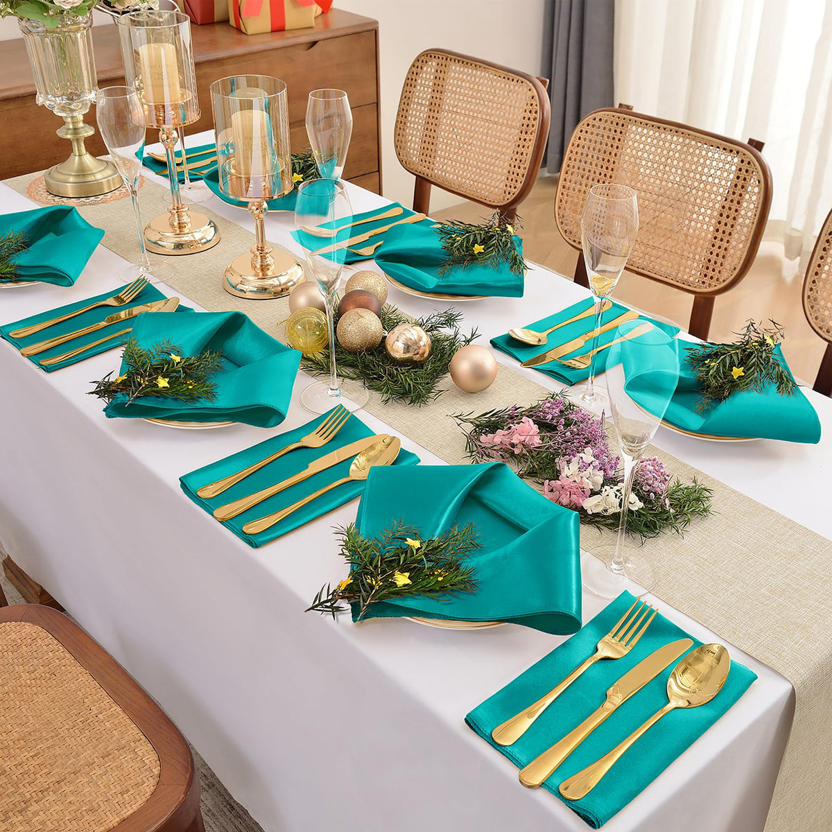 - Q: Do these napkins complement any specific decor styles? A: Yes, the elegant design of the satin napkins complements various decor styles, enhancing the ambiance of any setting.