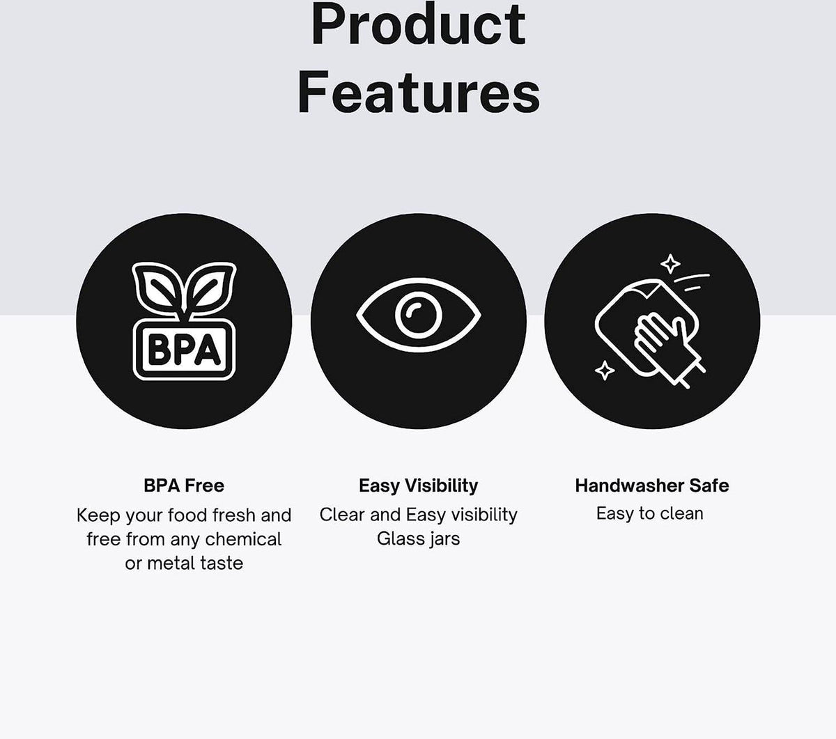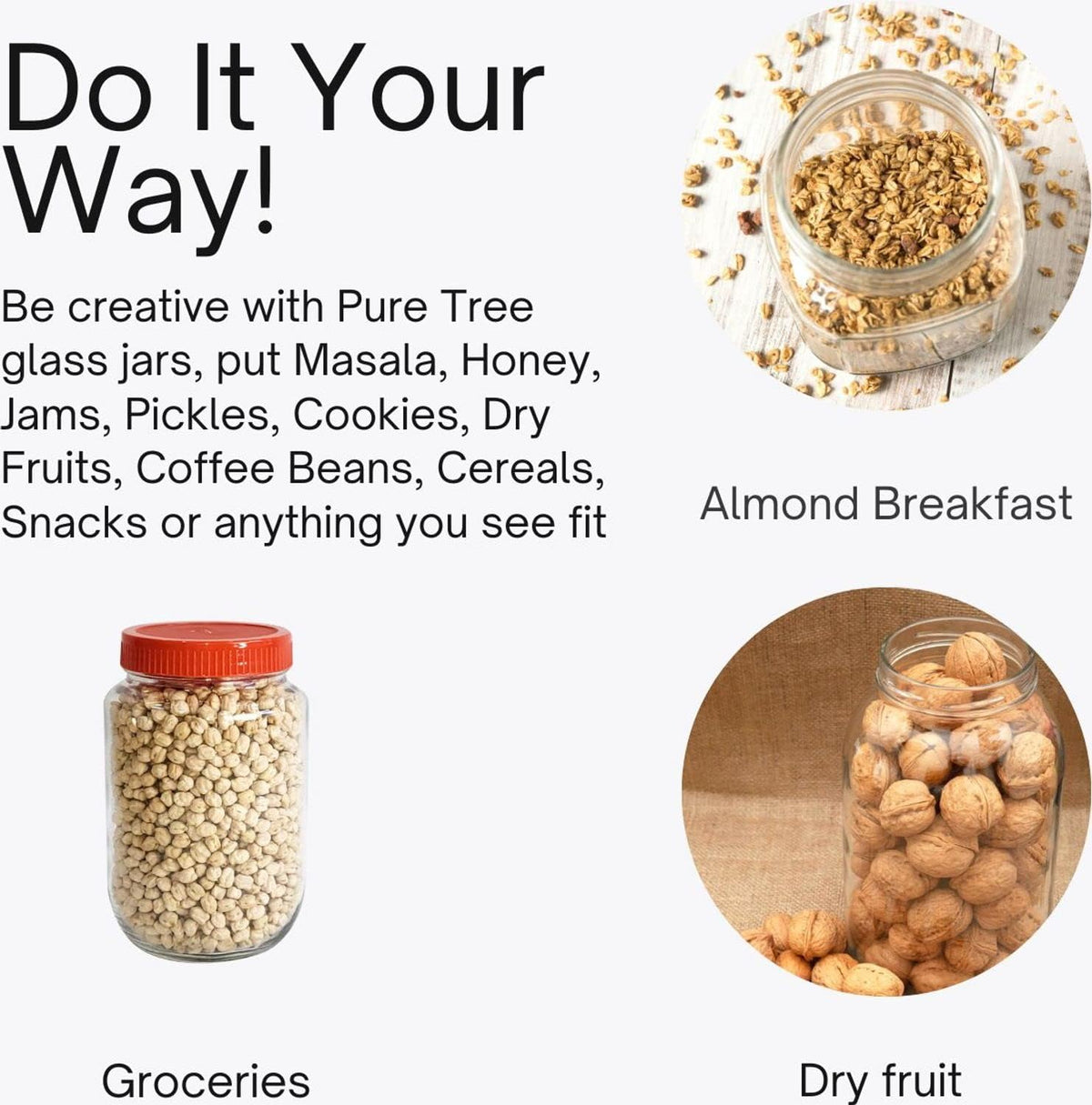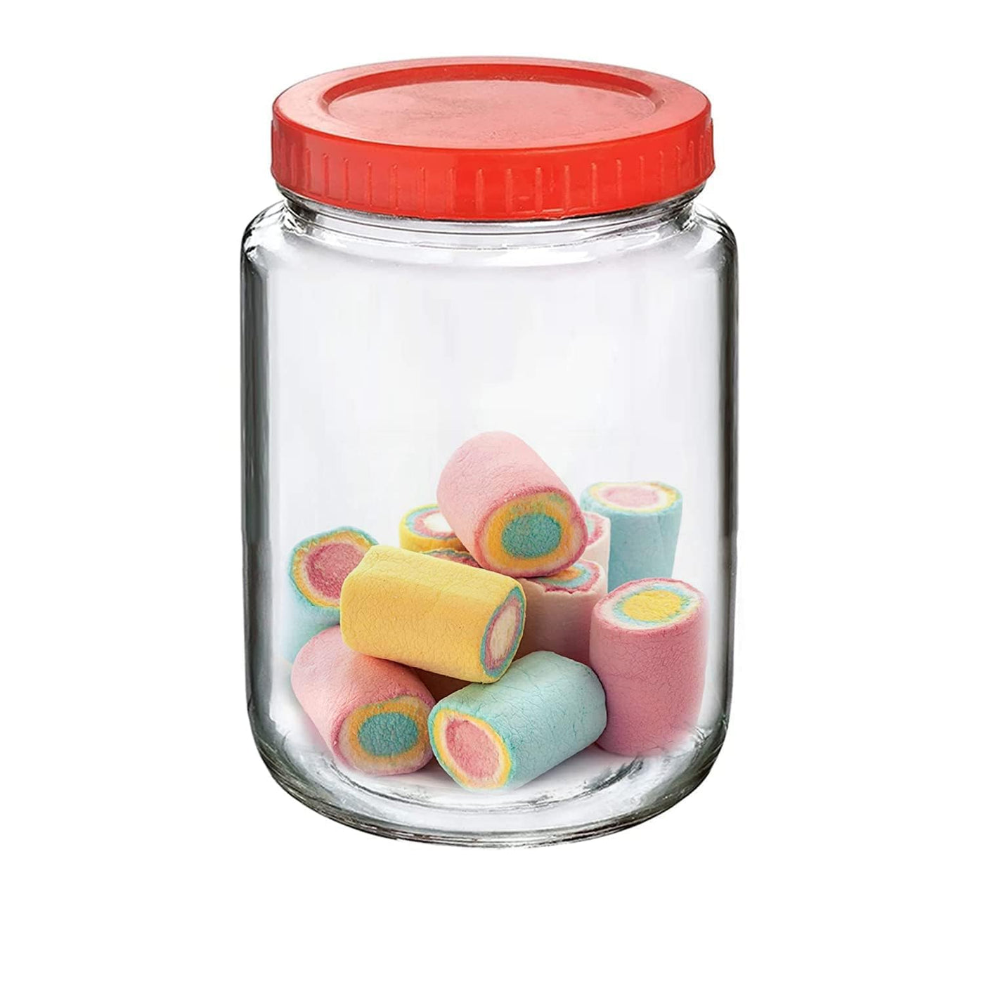 DescriptionBrand: Yera Glass - Body Material: Glass - Lid Material:Plastic Red Cap - Capacity Of Jars: 1000ml - Colour: Transparent - No Of Jars: 4