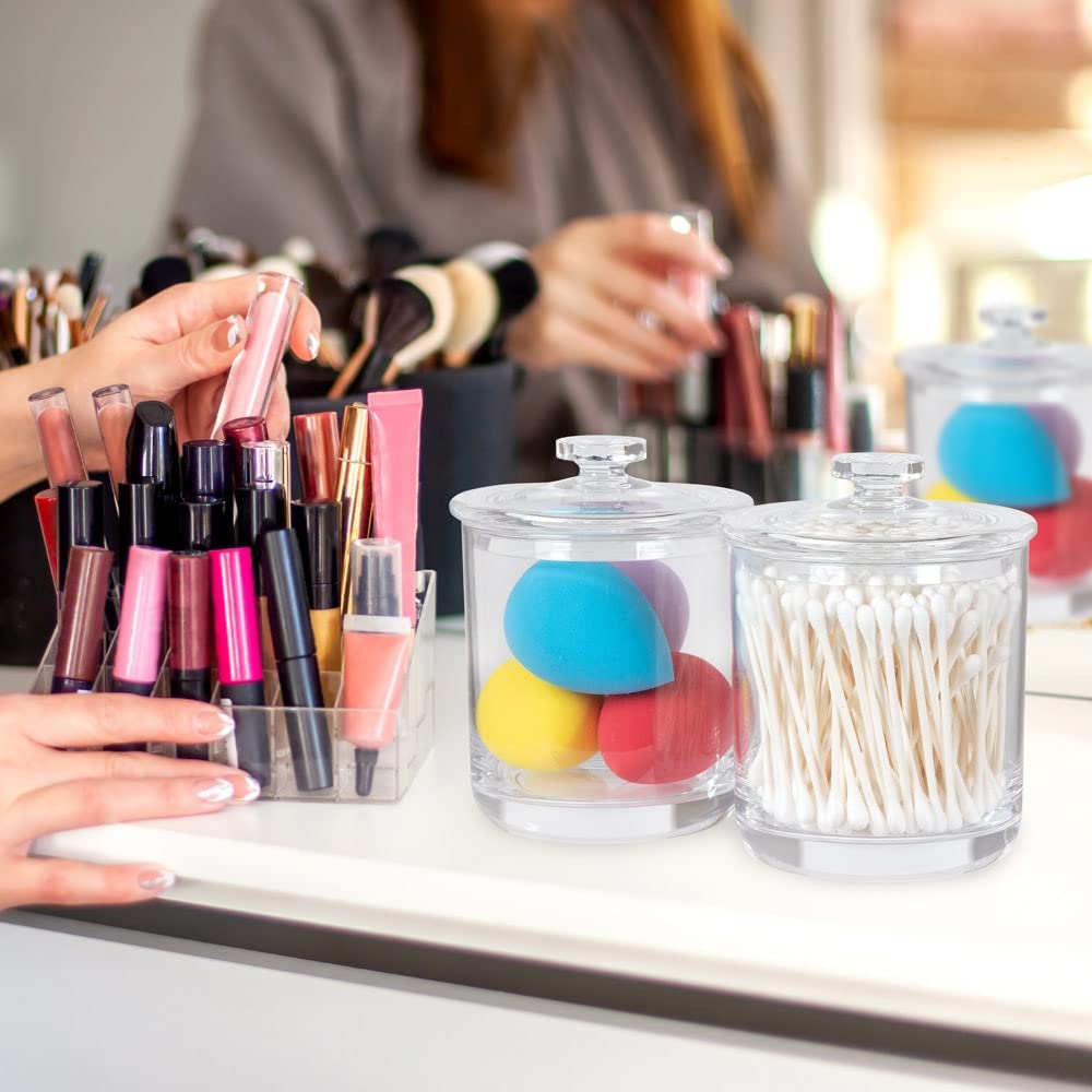 Forpro Acrylic Apothecary Jars With Lids, Set Of 2 15 Oz Storage Containers For Bathroom, Kitchen And Office, 4.5'' X 3.5''