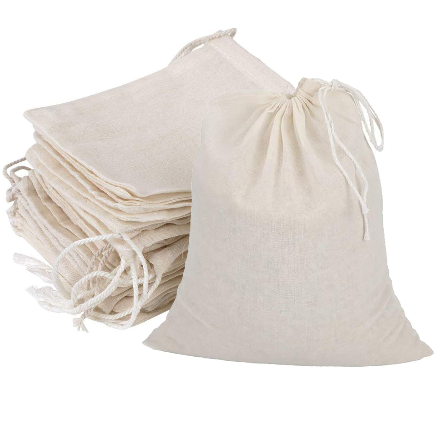 Giyomi 20 Pcs Reusable Cotton Drawstring Muslin Bag, Natural Unbleached Cotton Straining Herbs Cheesecloth Bags, Gift Bag Coffee