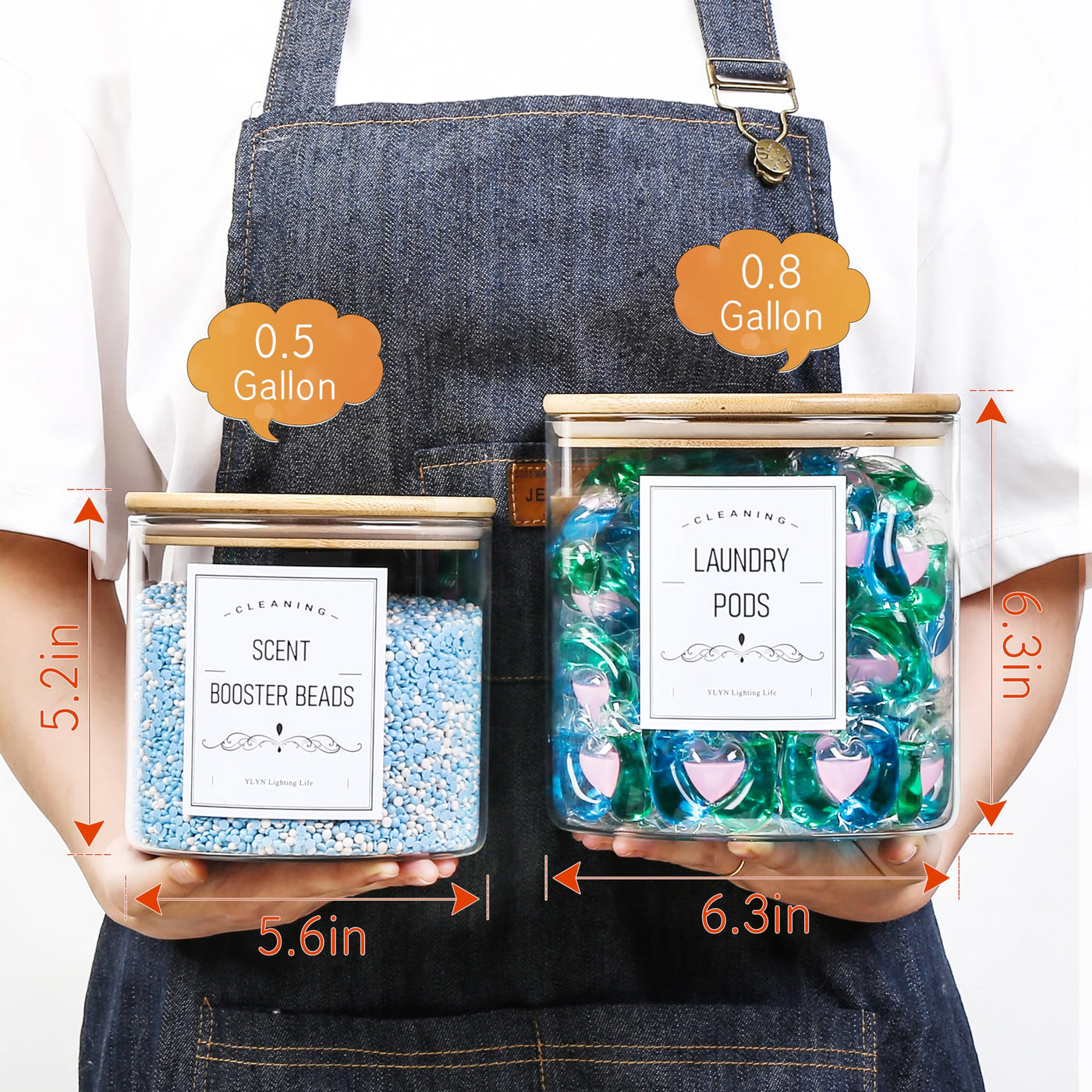Glass Jars For Laundry Room Organization Jars- Laundry Pods Container With Airtight Bamboo Lid- Dishwasher Pods Container. Laund