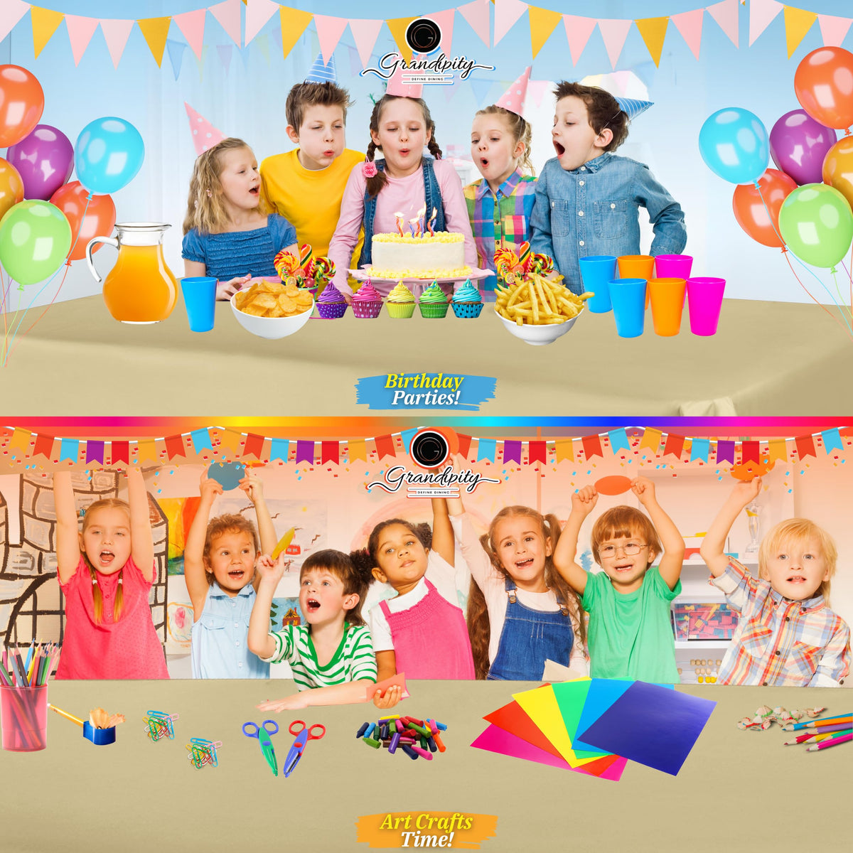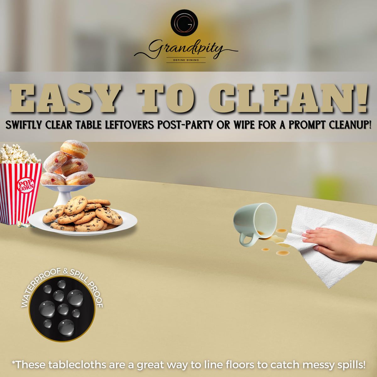 - Q: Is this tablecloth disposable? A: Yes, the Grandipity Beige Plastic Table Cloth is designed to be disposable, allowing for easy cleanup after events.