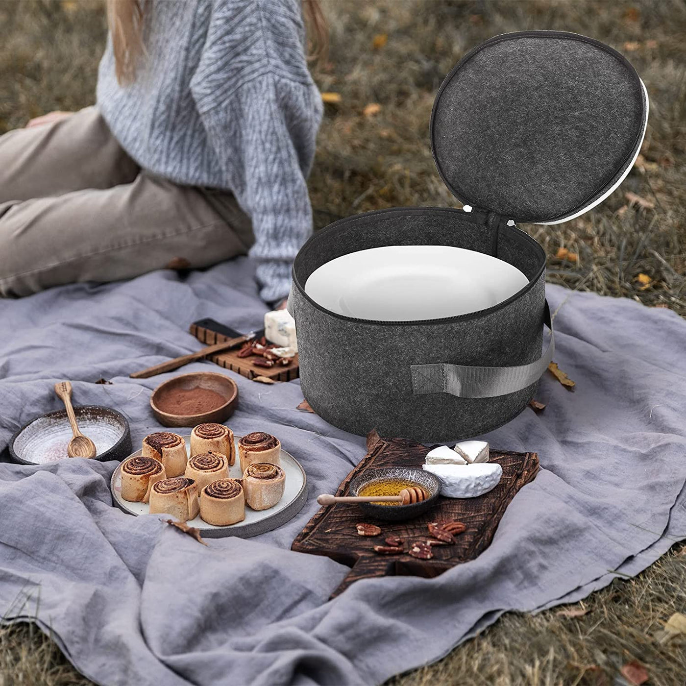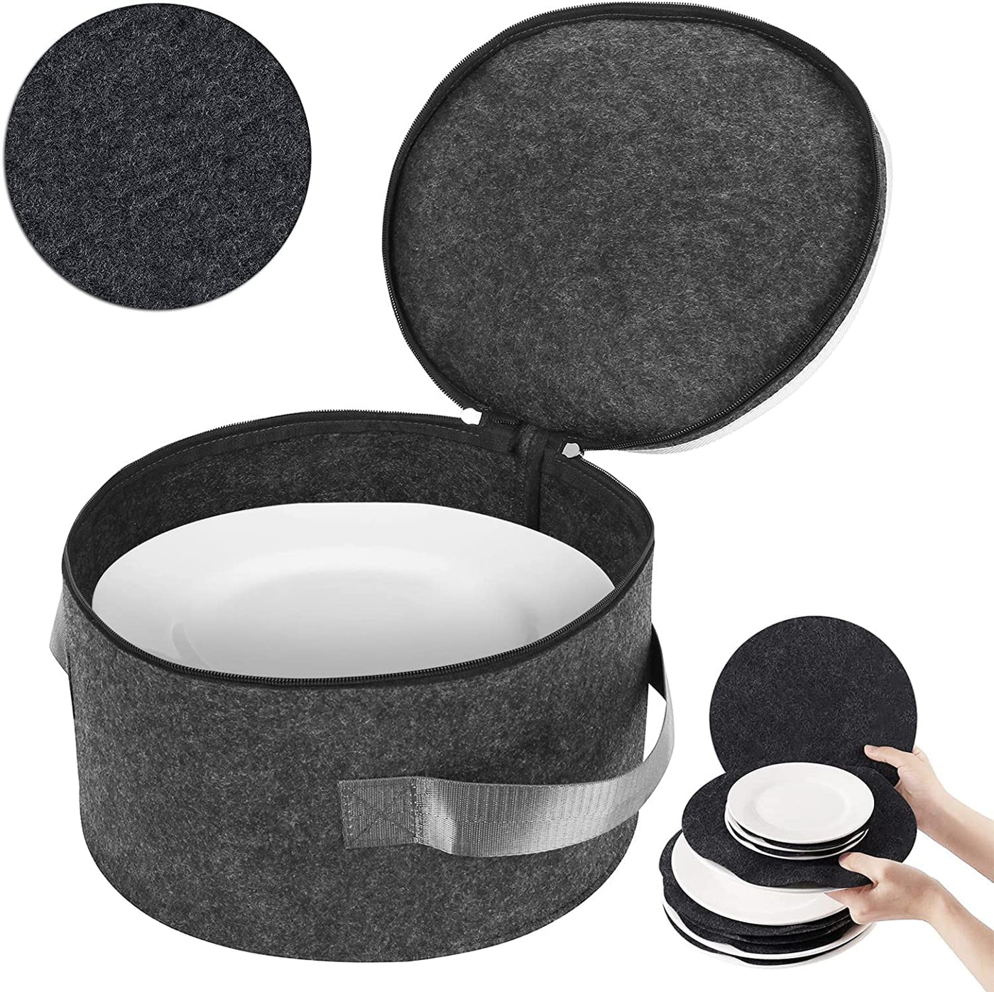 Greensheep Plate Storage Case With 12 Thick Felt Dividers For Storing And Organizing Dinnerware Dishes, Dark Grey
