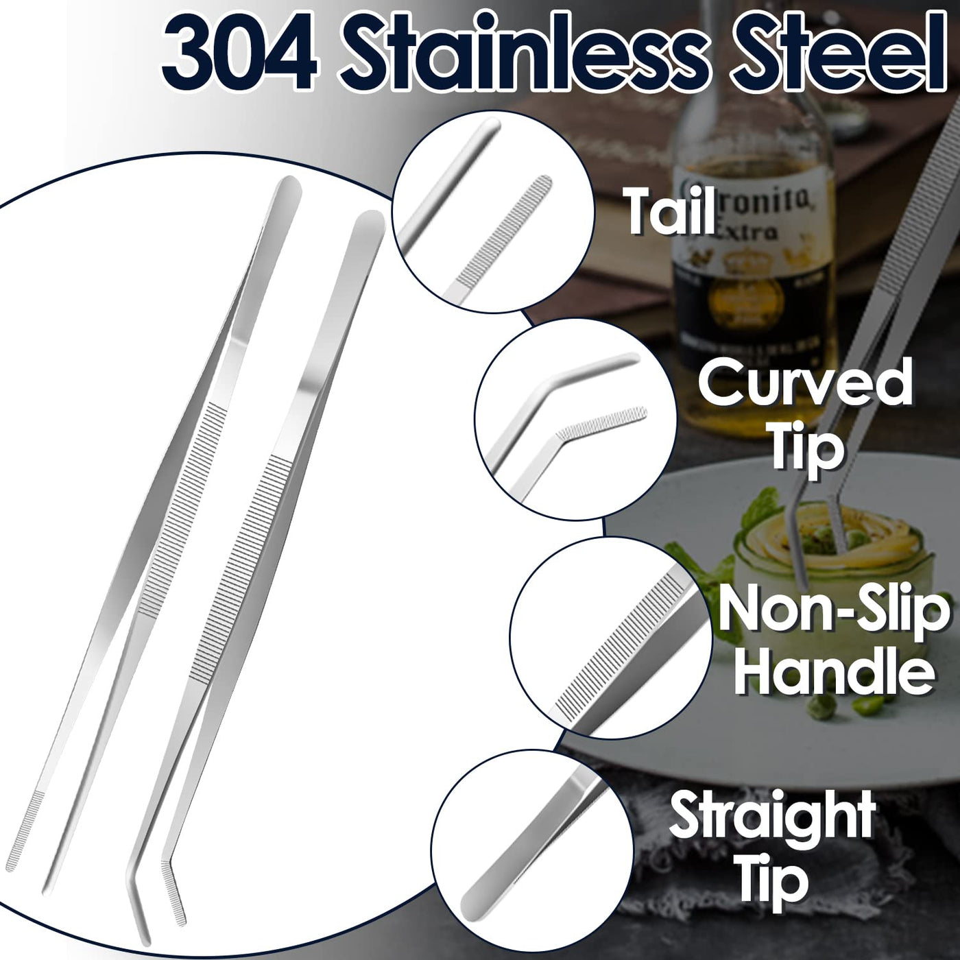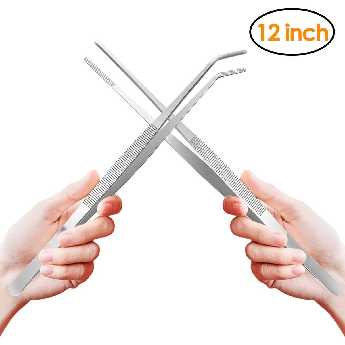 Gutsdoor Kitchen Tweezers Set Stainless Steel Tongs Tweezers Set Of 2 With Precision Serrated Tips For Cooking And Medical (12 I