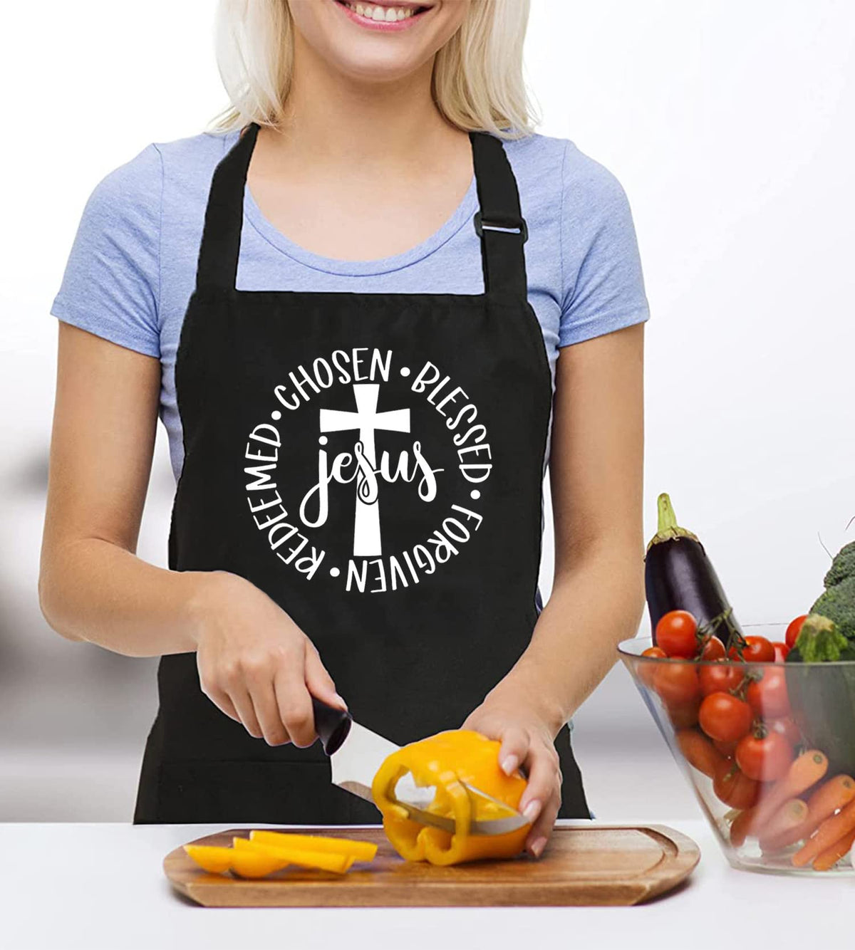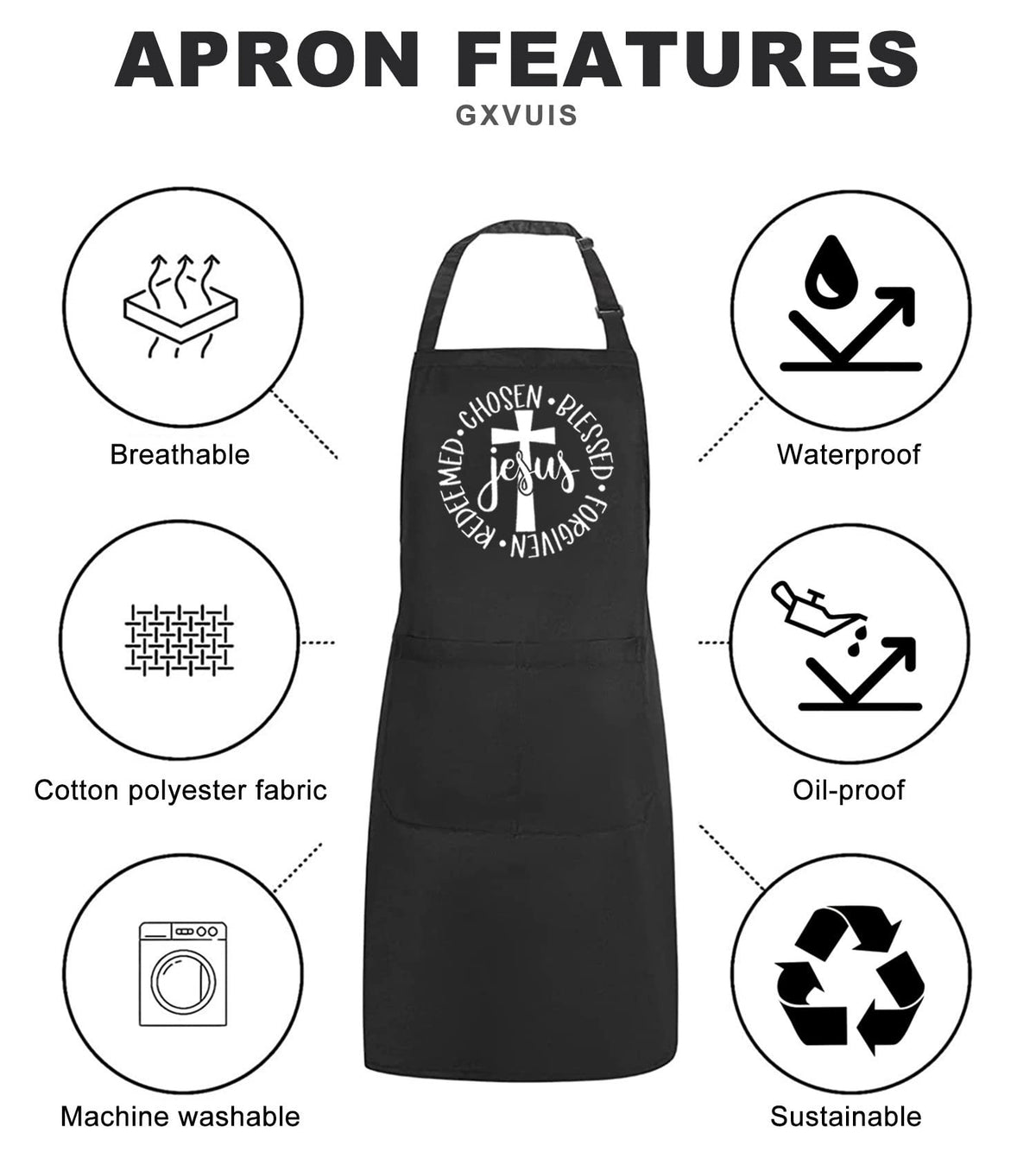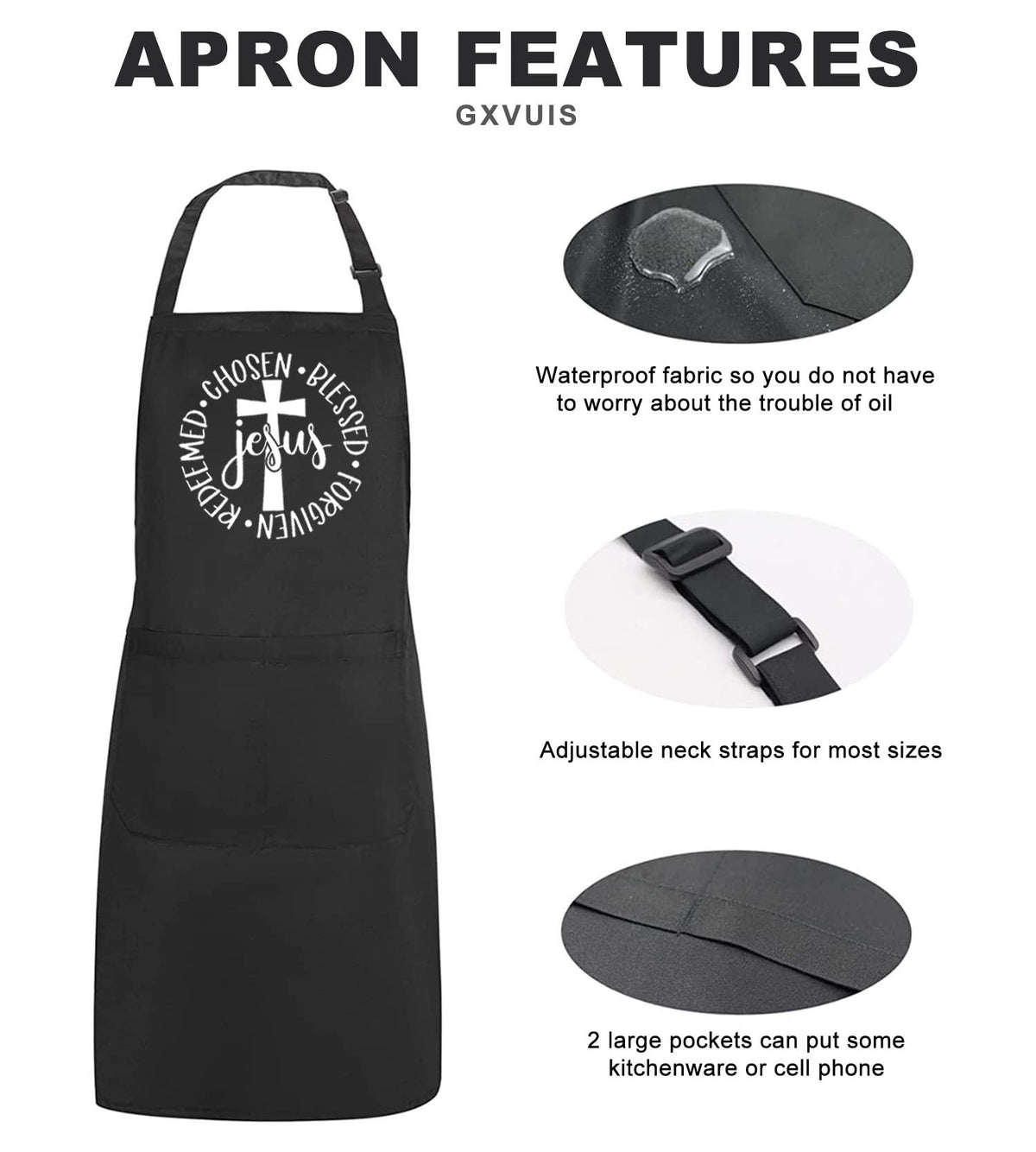Gxvuis Jesus Apron For Women With 2 Pockets Christian Cross Waterproof Adjustable Bib Apron For Kitchen Cooking Bbq Grilling Bla