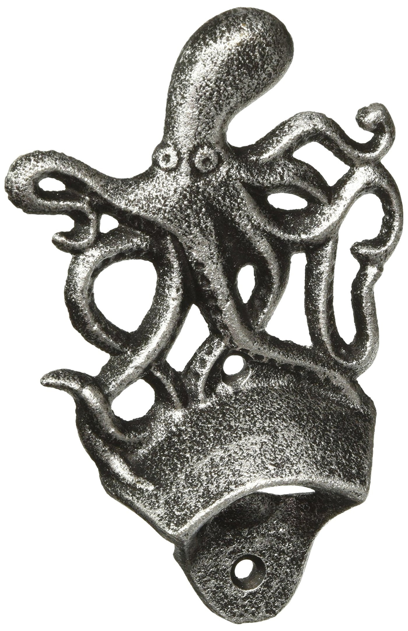 Hampton Nautical Antique Silver Cast Iron Wall Mounted Octopus Bottle Opener