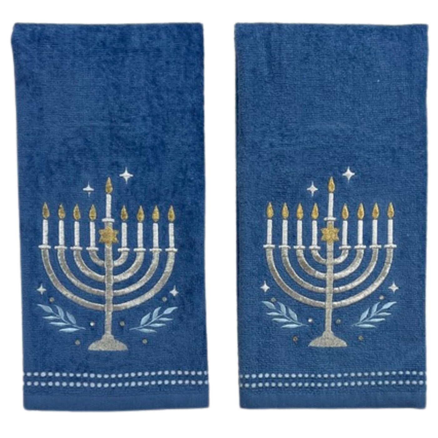 Hanukkah Menorah Bath Hand Towel Set, 16 X 25 Inches, Set Of 2, Blue Cotton Guest Towels