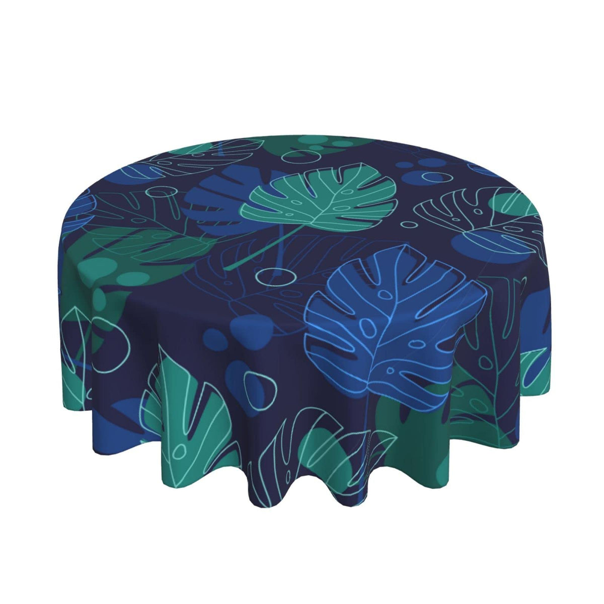 Hawaii Tropical Leaves Tablecloth Round Summer Table Cover Washable Polyester Table Cloth For Kitchen Party Picnic Dining Decor