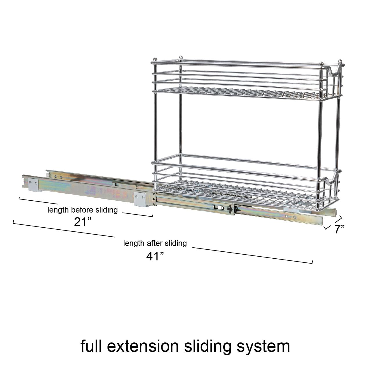 - Q: What are the dimensions of this cabinet organizer? A: The organizer measures 21 inches deep, 7 inches wide, and 17.5 inches high, providing ample space for storage in slim cabinets.