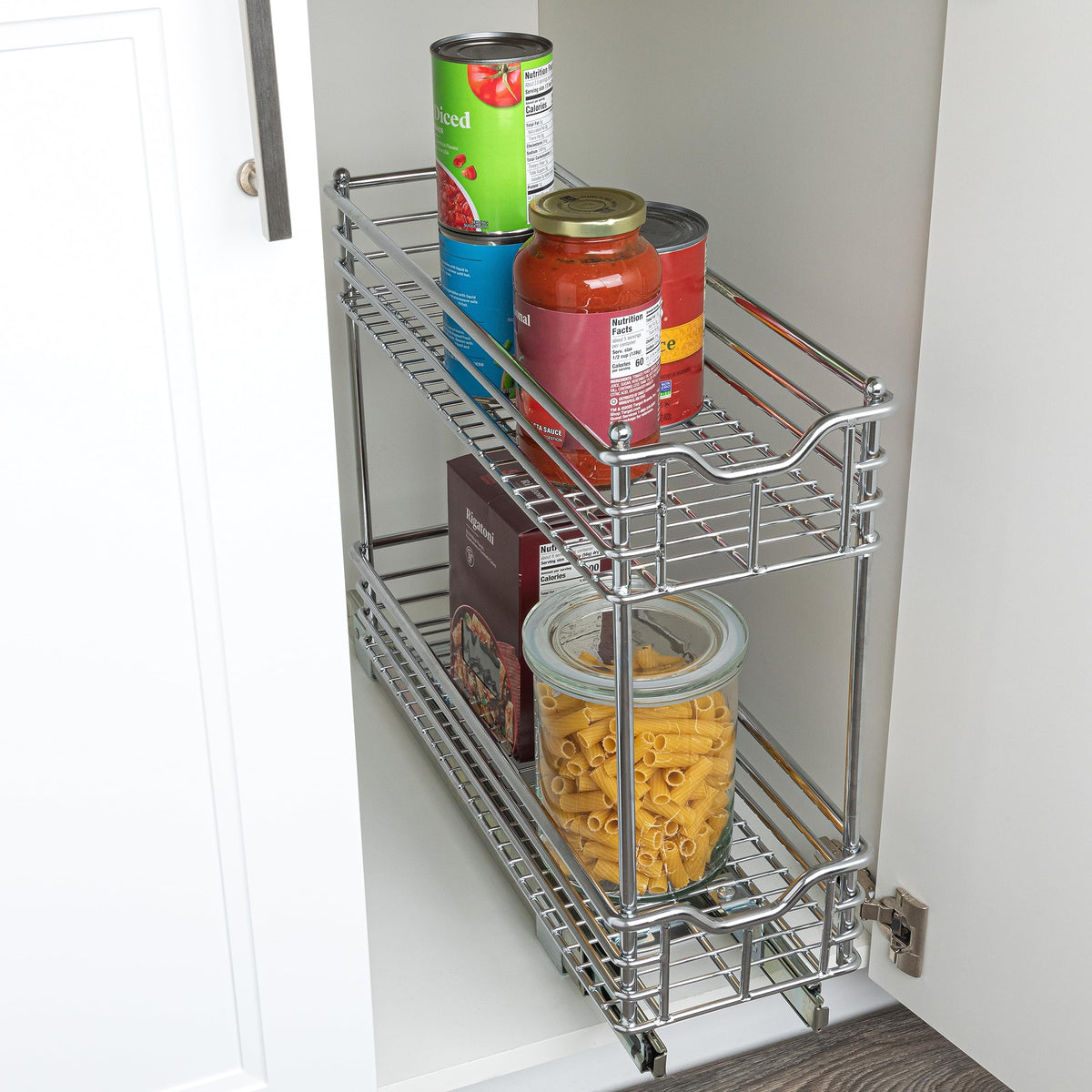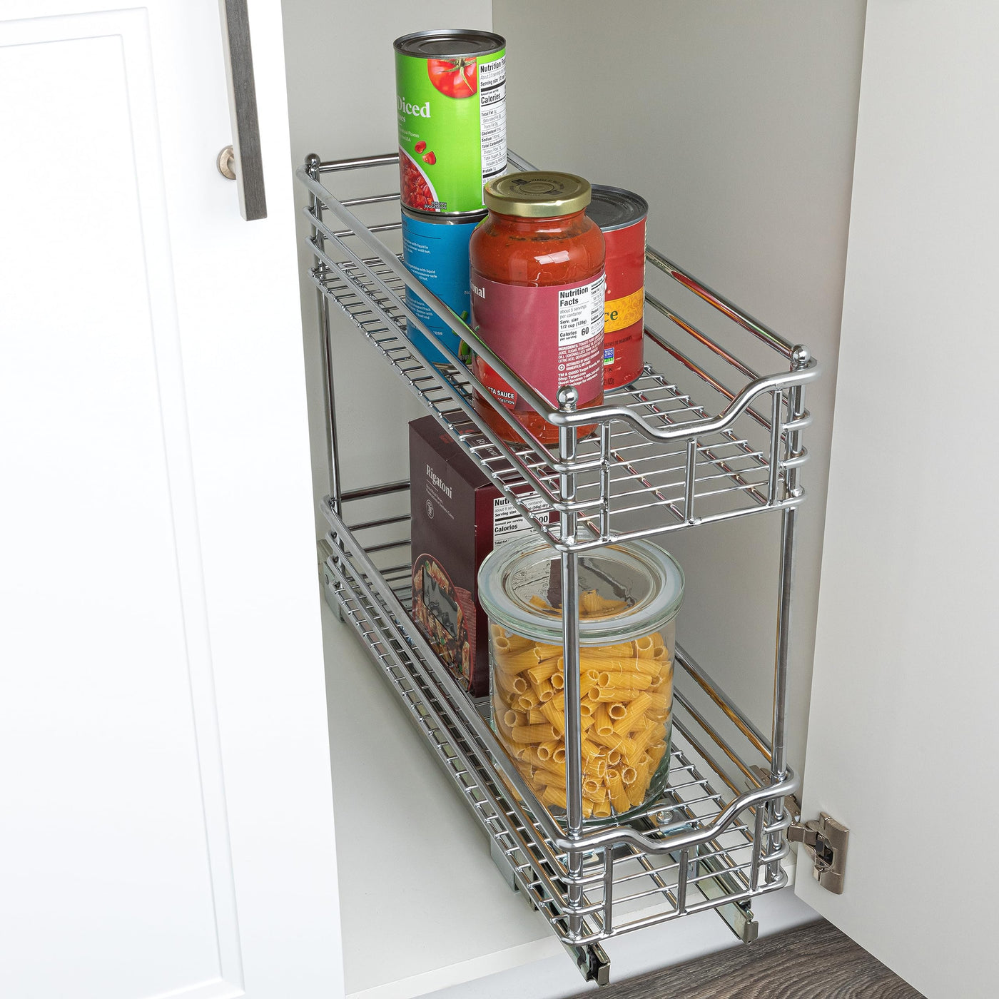 - Q: What types of items can I store in this organizer? A: You can store a wide range of items, including cans, dry goods, and cleaning essentials, keeping them organized and easily accessible.