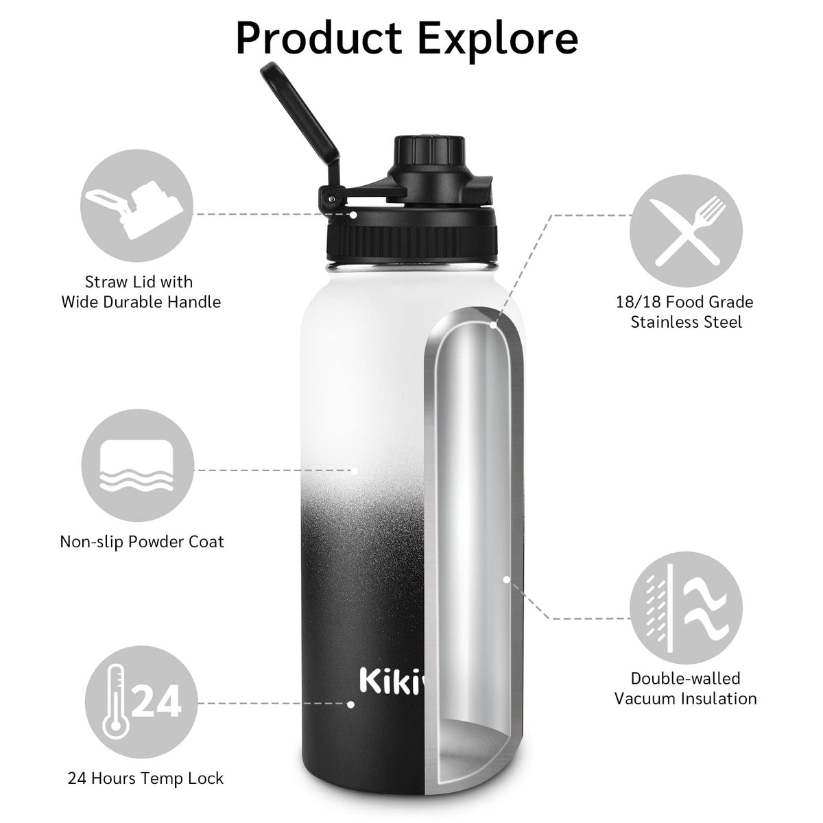 • Q: What is the capacity of the Kikiwell Insulated Water Bottle? A: The Kikiwell Insulated Water Bottle has a capacity of 32 ounces, making it suitable for all-day hydration.