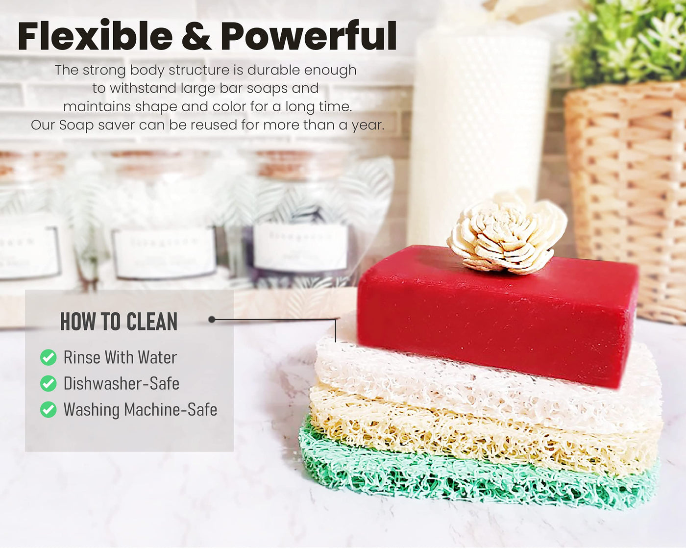 • Q: Can the soap saver accommodate large-sized soaps? A: Yes, the soap saver has the elasticity to support large-sized soaps and maintains its shape without discoloration.