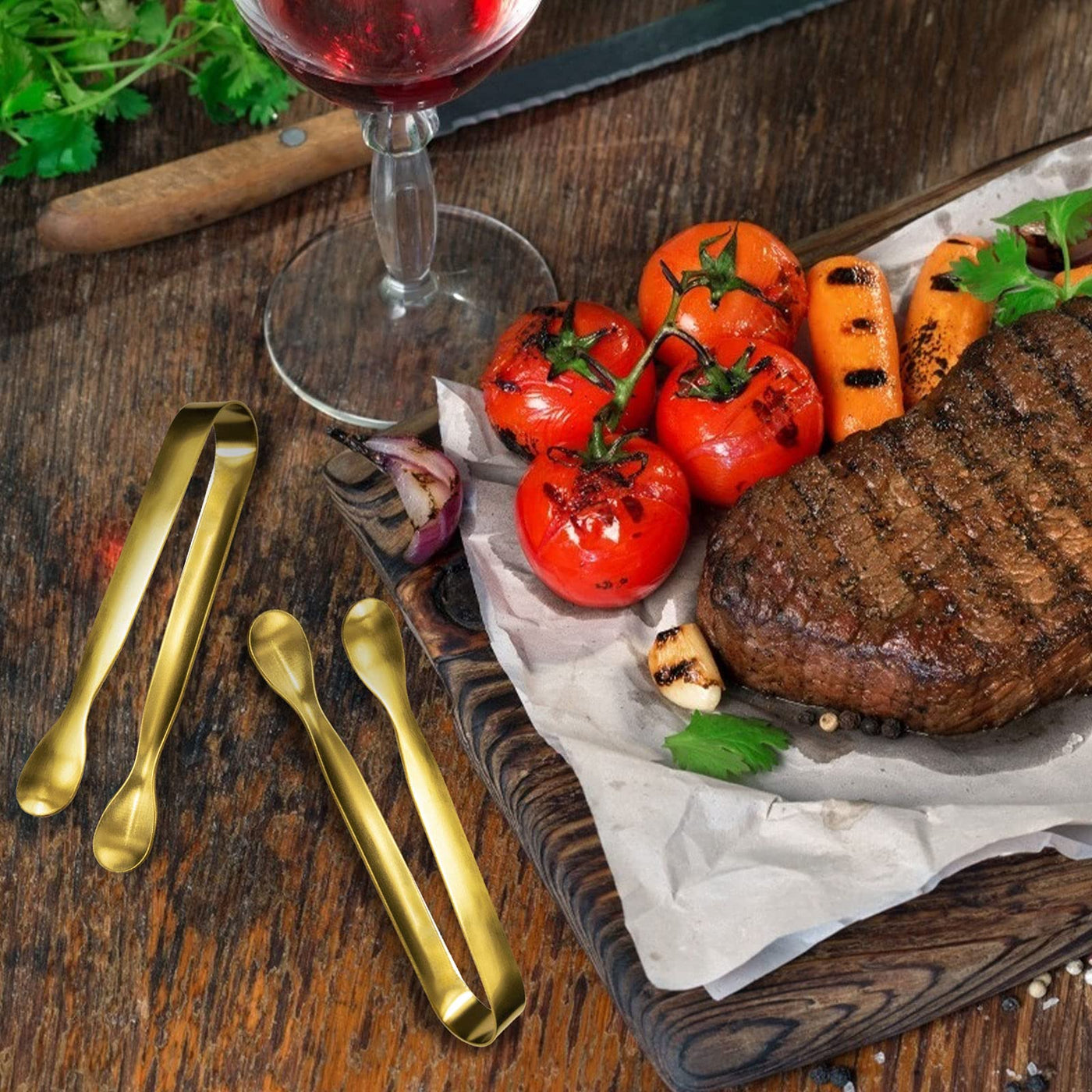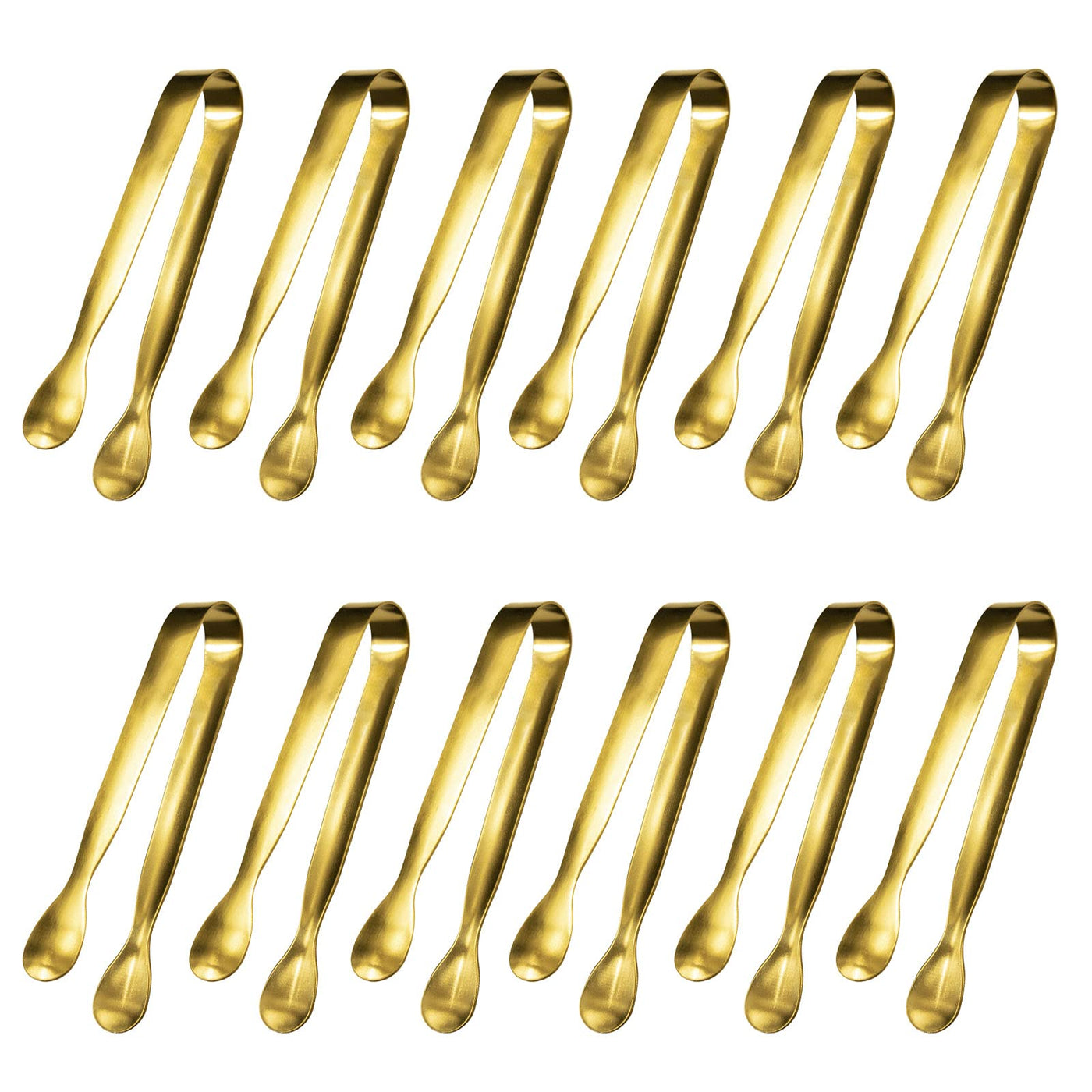 Jcren 12 Pcs Serving Tongs, Small Serving Utensils For Parties Catering Gold Tongs, Food-Grade 304 Stainless Steel Mini Appetize
