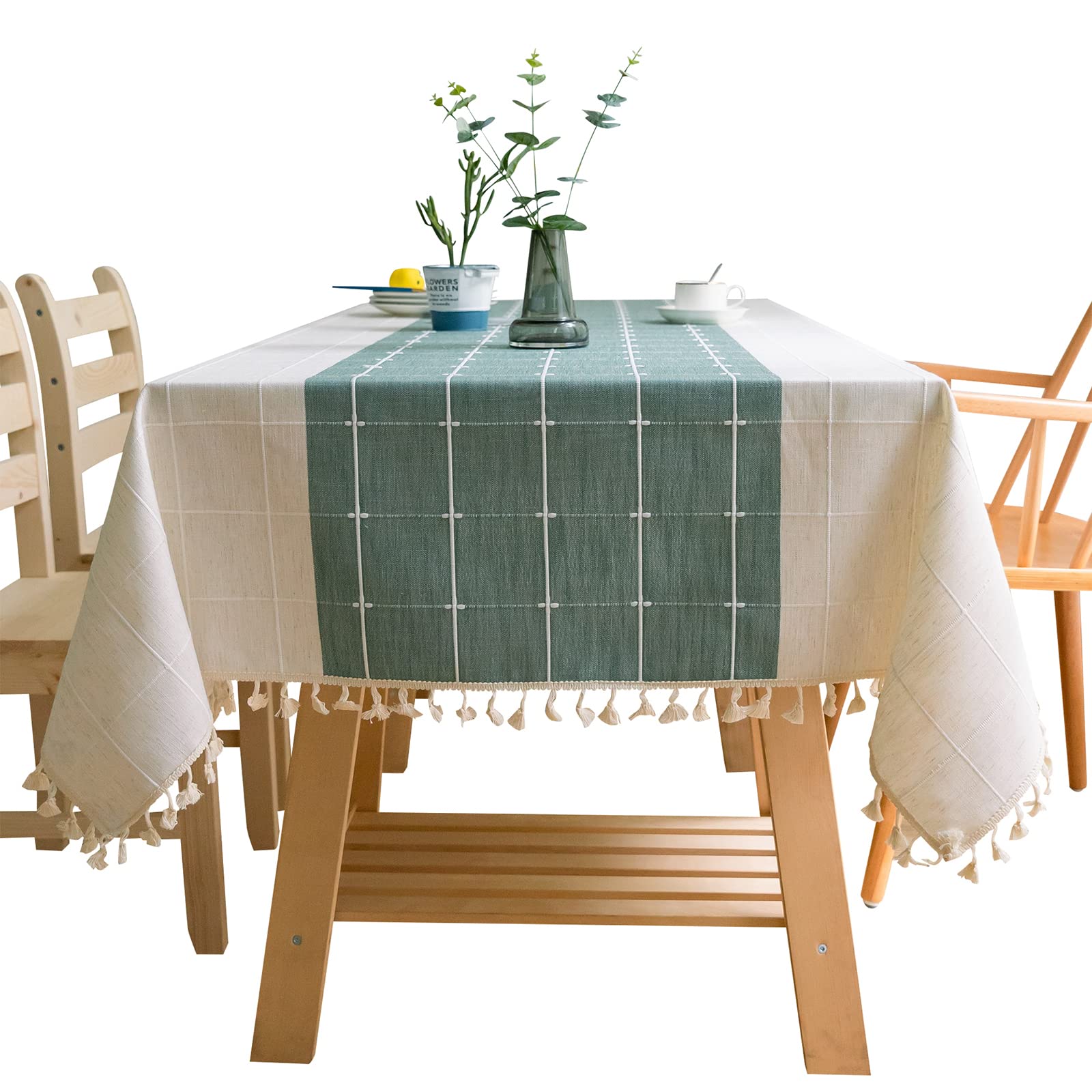 Jeloris Rustic Embroidered Tablecloth With Tassel, Cotton Linen Wrinkle Free Anti-Fading Washable Dust-Proof Table Cover For Din